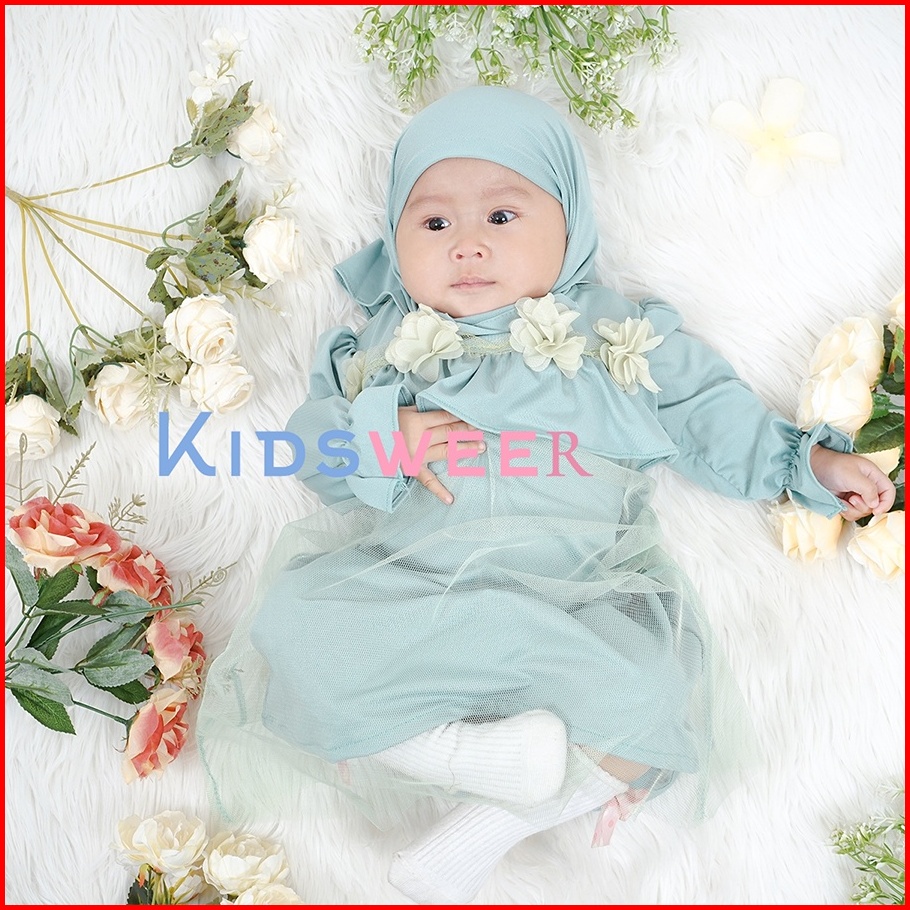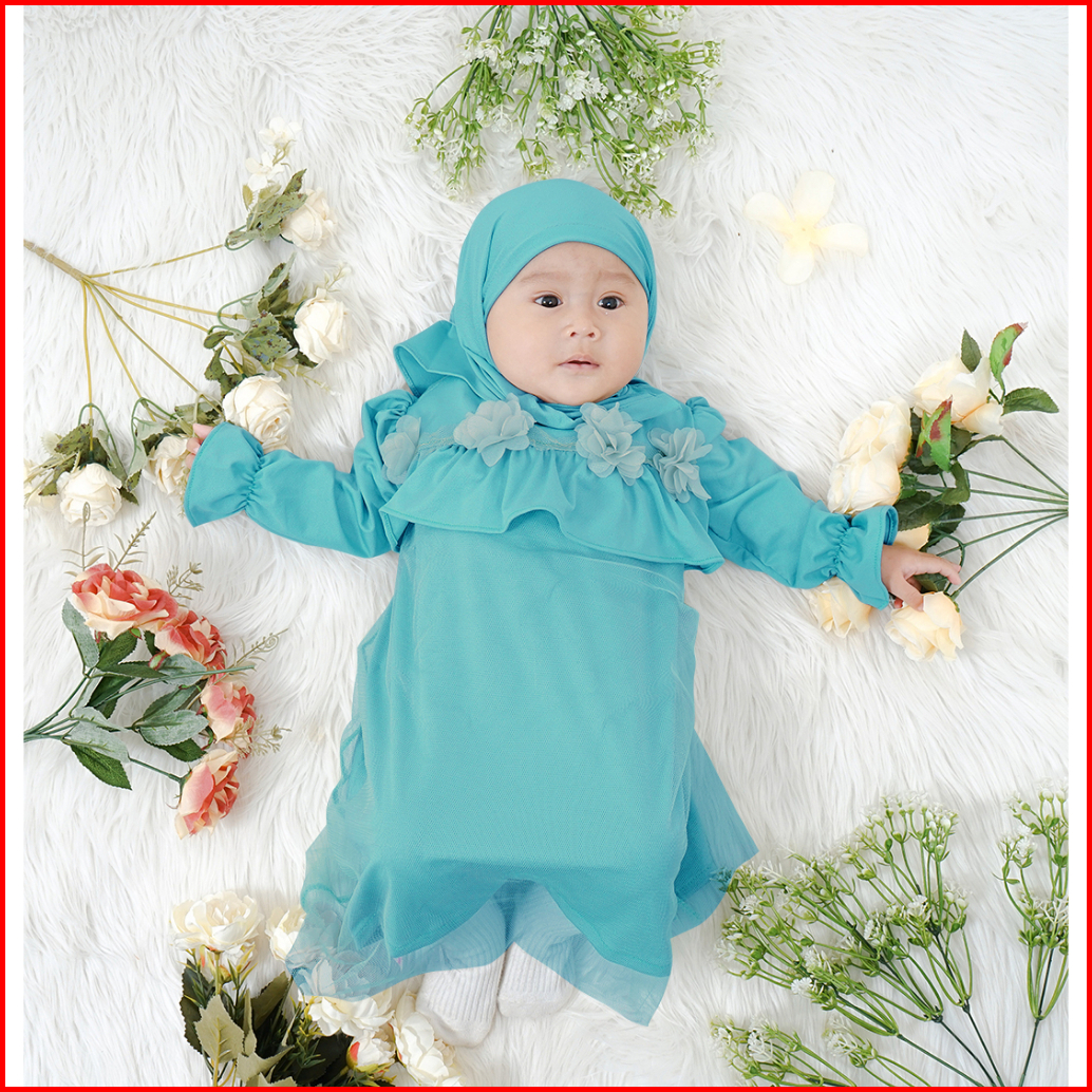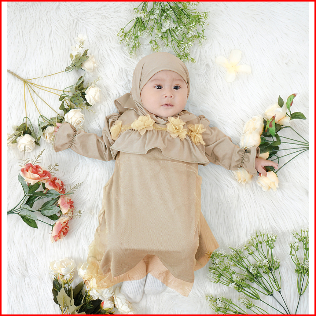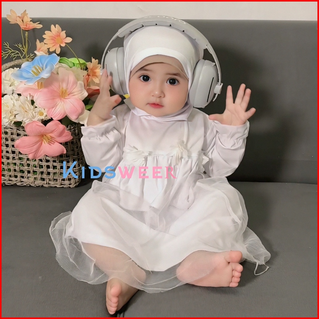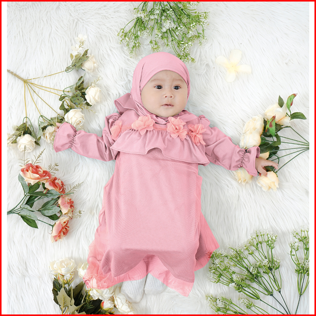 Gamis Bayi Perempuan Newborn - 2 Tahun Zakiya 6-11 Bln 12-18 Bulan Baju Anak Free Jilbab Murah Pakaian Muslim Balita Set