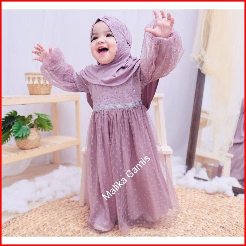 Gamis Bayi Brukat Tile Dot - Gamis Anak Perempuan - Baju Gamis Bayi - Gamis Pesta Anak Perempuan - Gamis Satu Sett Hijab