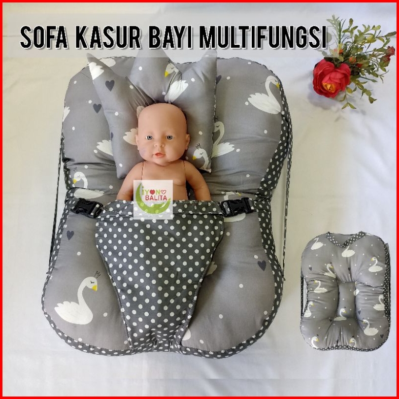 Sofa Bayi Jumbo Dengan Sabuk Pengaman Gesper Multifungsi Bisa Untuk Kasur Bayi Free Bantal Peyang Jumbo