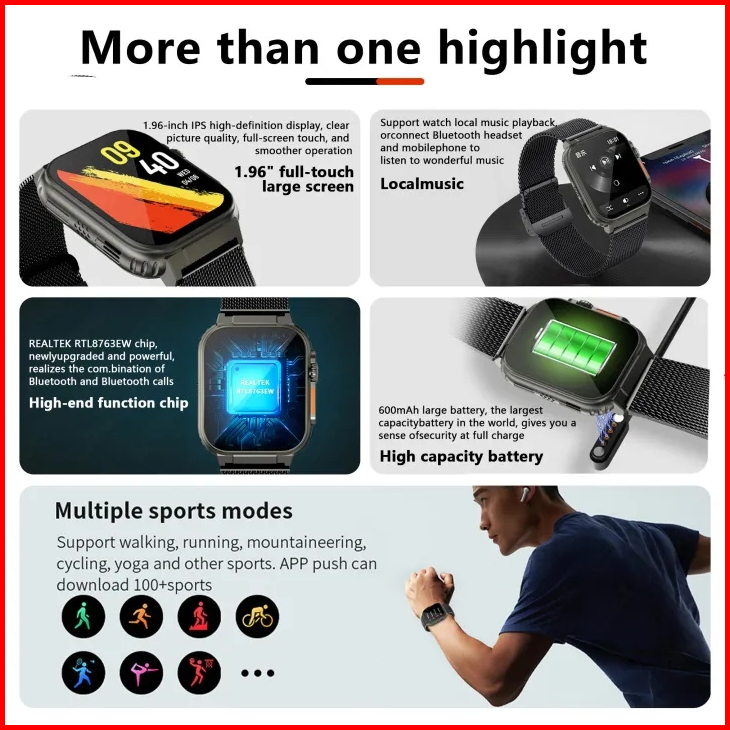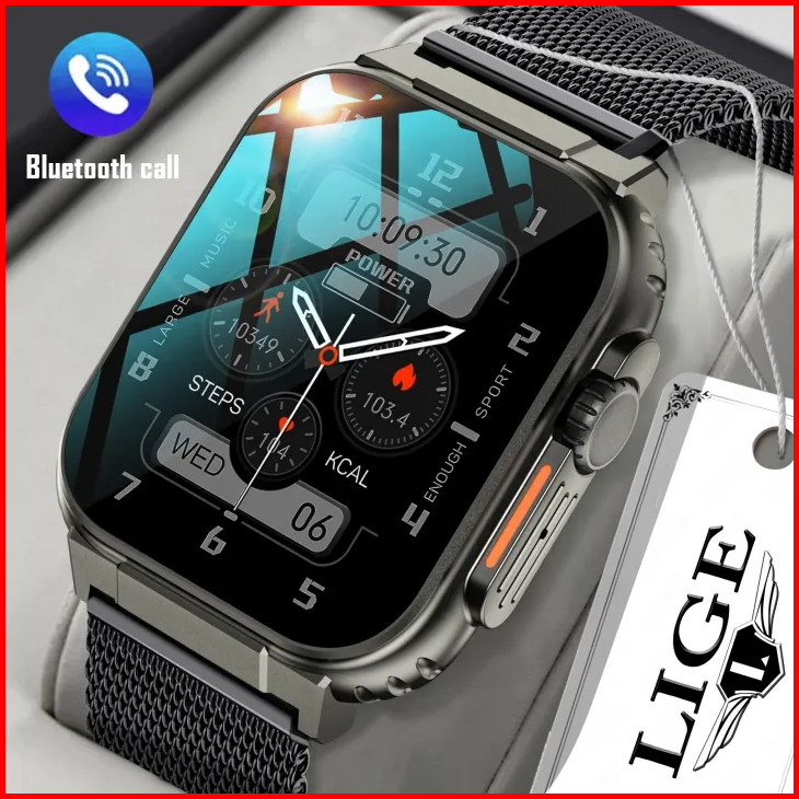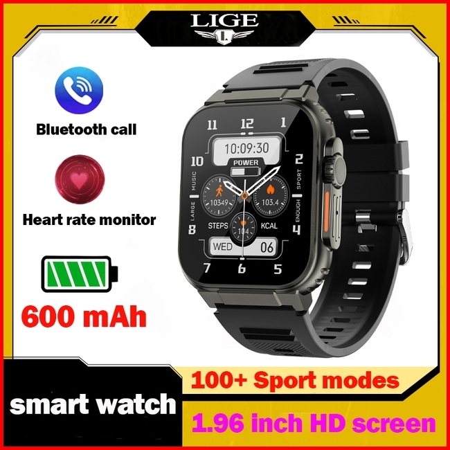 Lige Pintar Jam Tangan Pria 1 96 Inci Sentuhan Penuh 600mah Baterai Jam Tangan Olahraga Tahan Air Perekaman Dukungan Duk