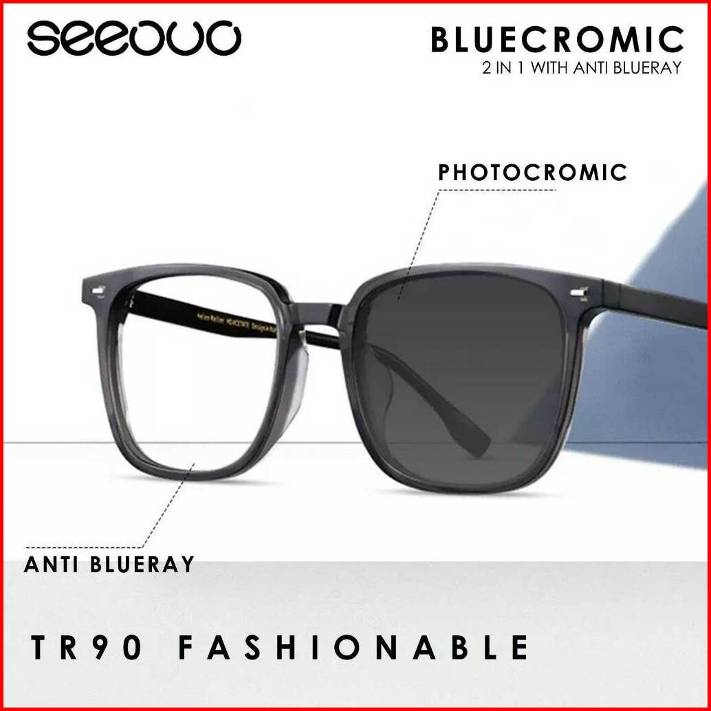 Seeouo Kacamata Antiradiasi Blueray Photocromic Model Kotak Stylish Bahan Tr90 Pria Wanita Bisa Minus 650 651