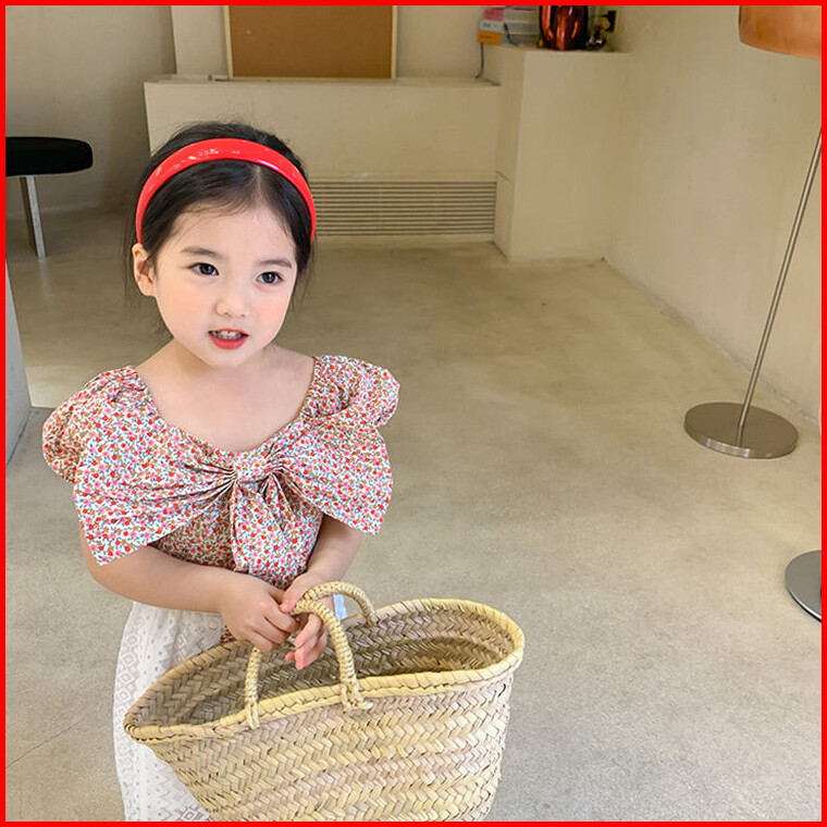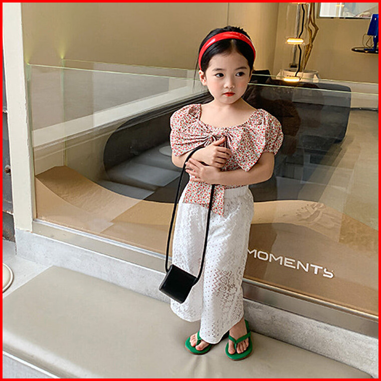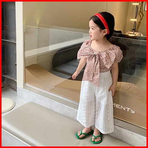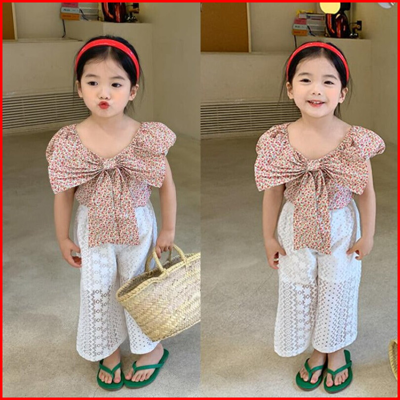 363345 - Setelan Anak Perempuan 2025 Pita Besar Motif Bunga Cantik Celana Brokat - Baju Anak Perempuan Korea Ootd Terbar