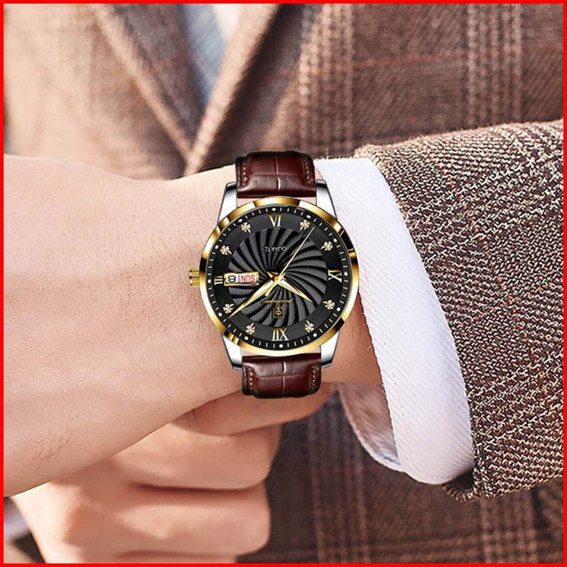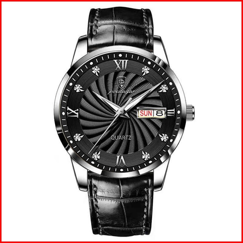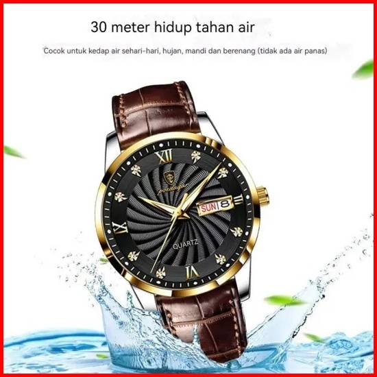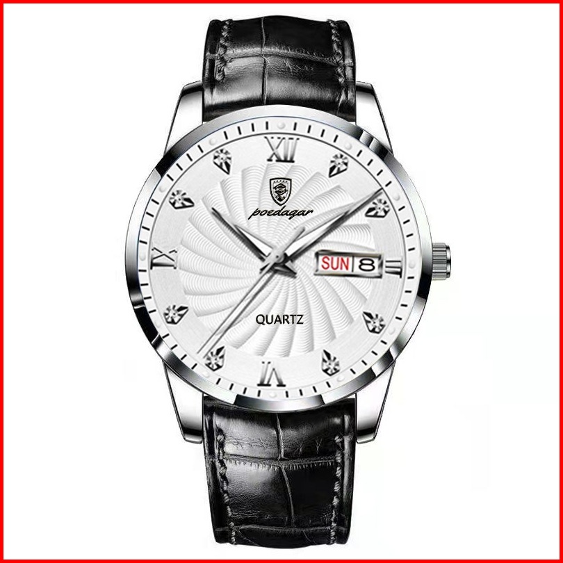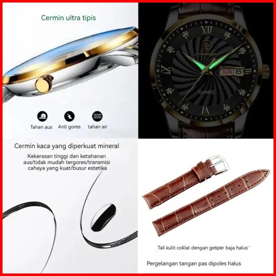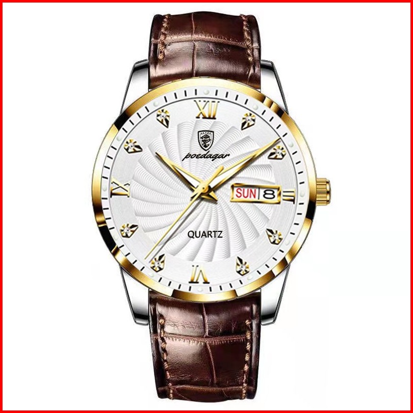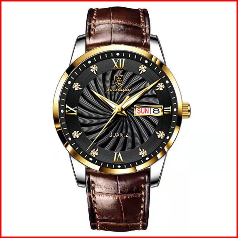 Poedagar 827 Jam Tangan Pria Swiss Brand Anti Air Strap Kulit Luminous Quartz Original 100