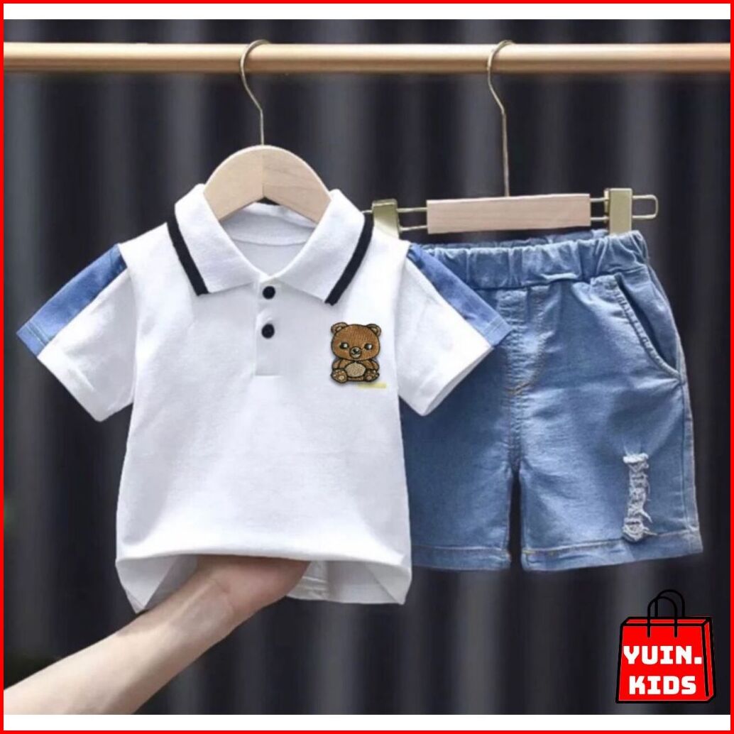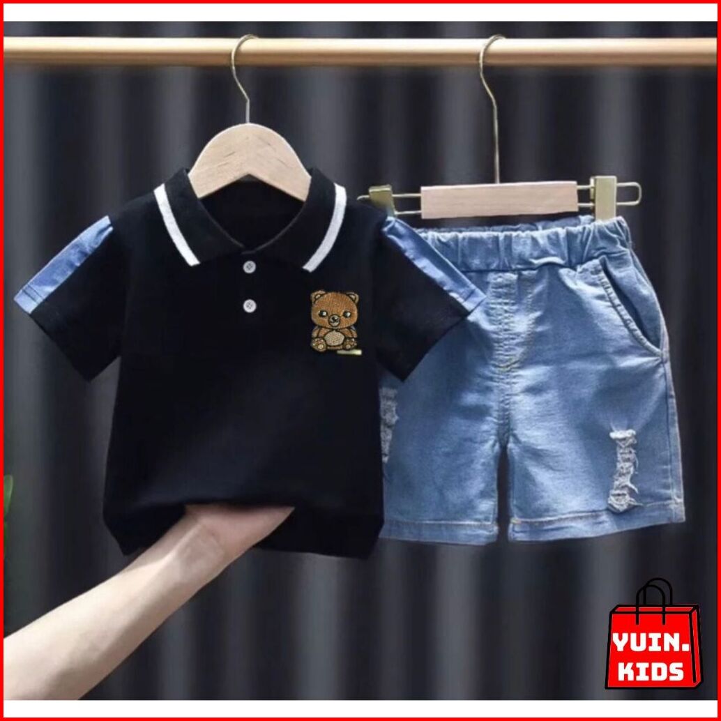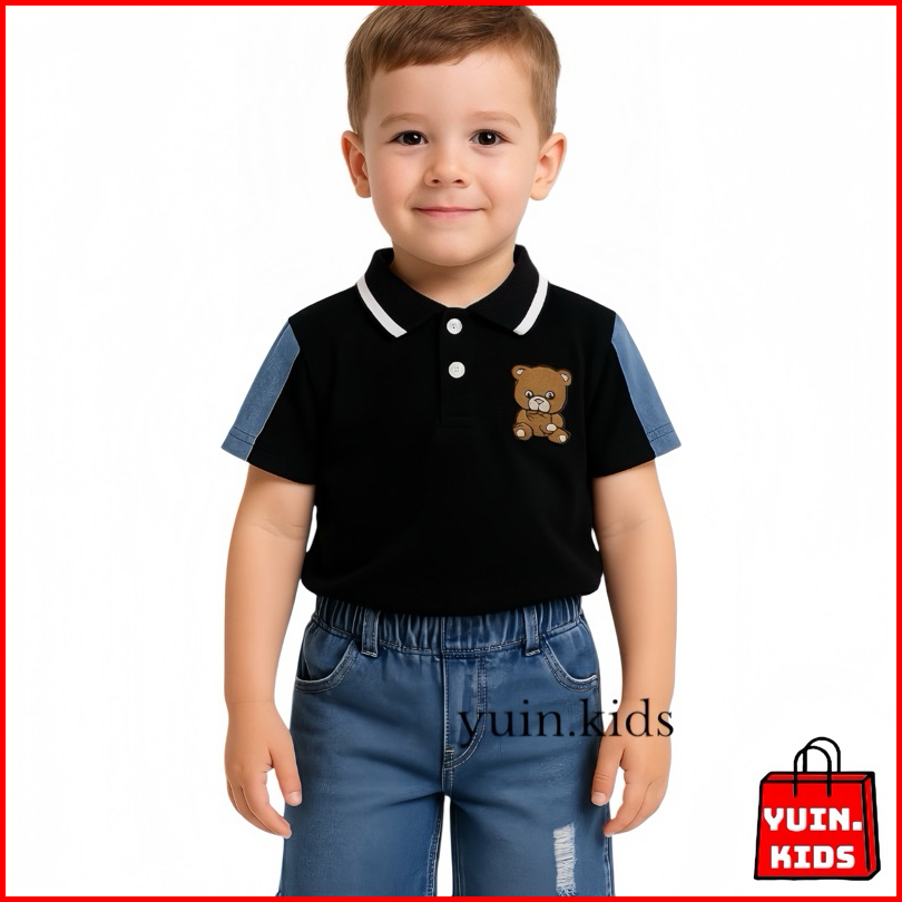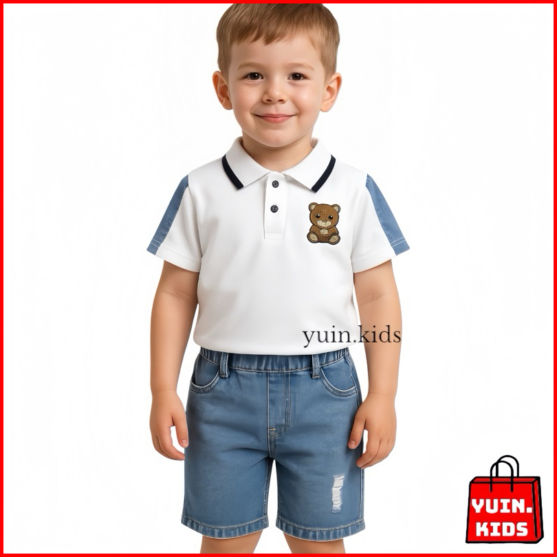 Yuin.kids Setelan Baju Polo Anak Laki-laki Motif Bear Untuk Usia 1-5 Tahun Ada 2 Pilihan Warna