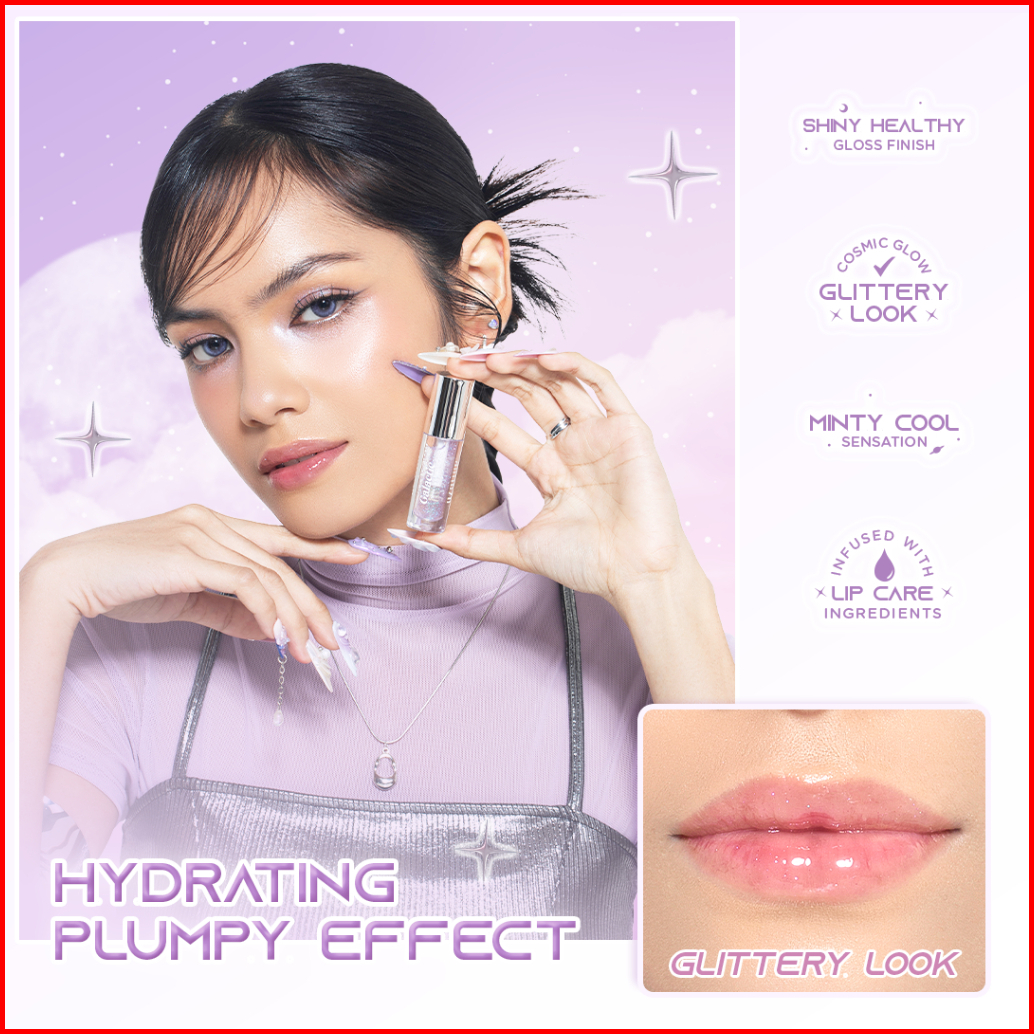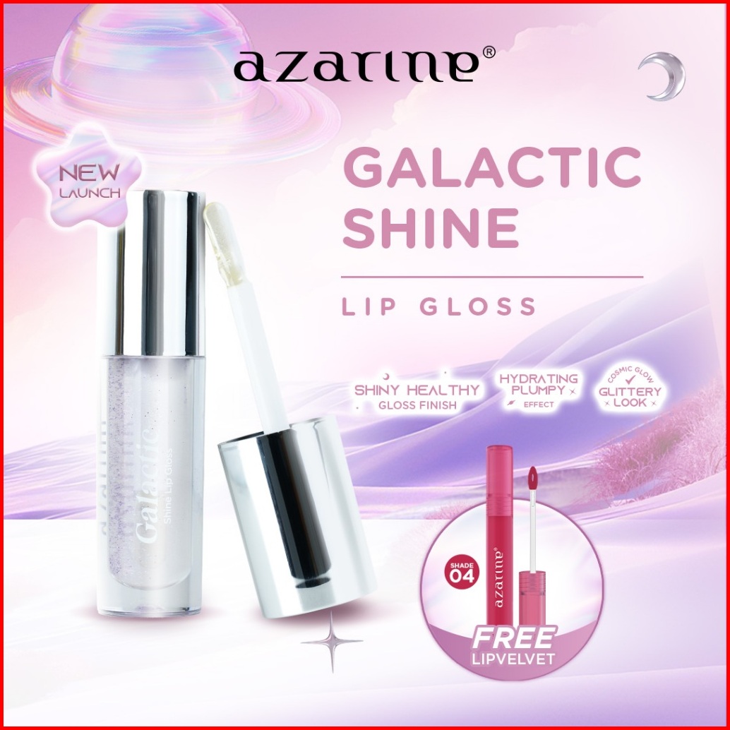 Azarine Galactic Shine Lip Gloss Hydrating Plumpy Effect Glittery Look With Jojoba Seed Oil Melembabkan Menutrisi Bibir
