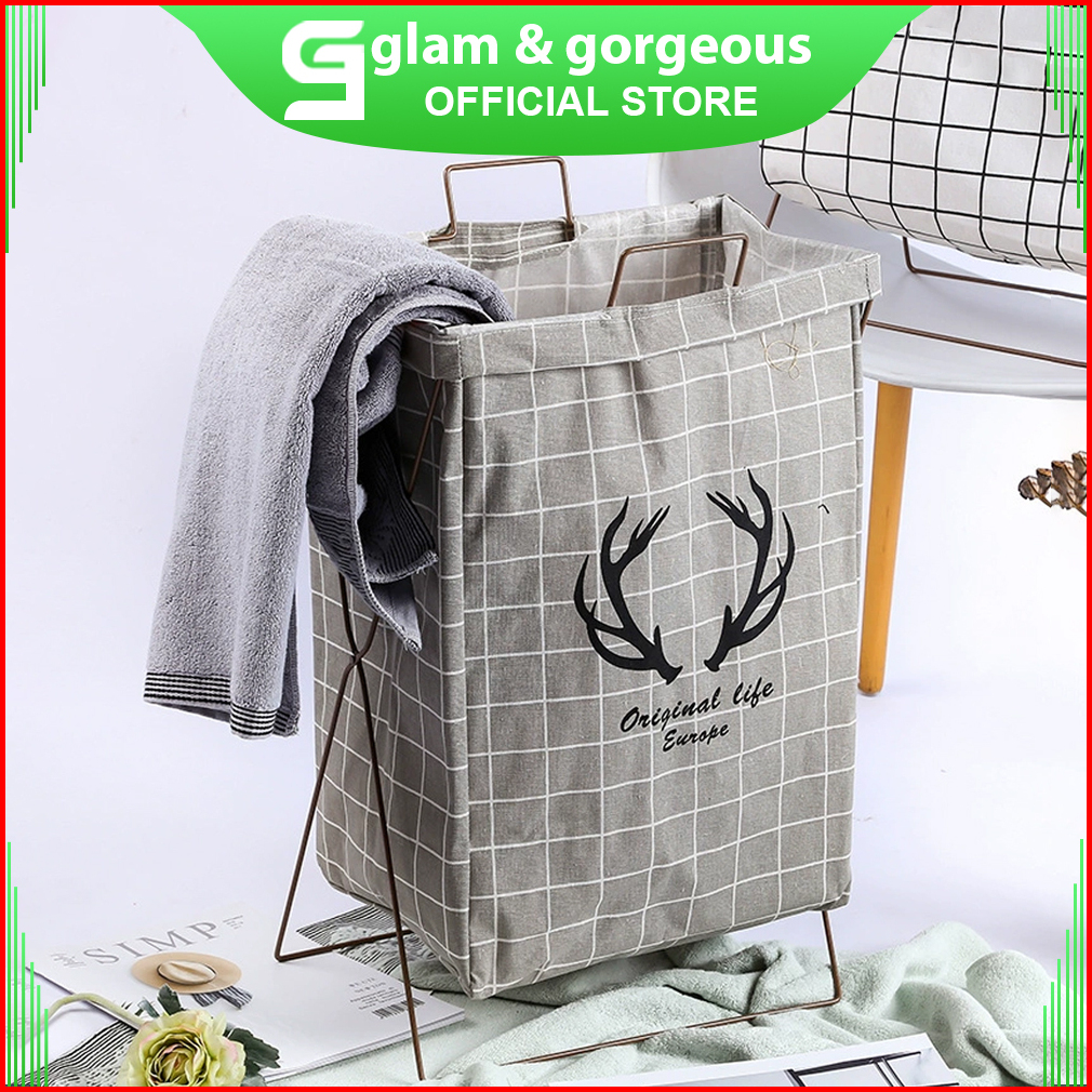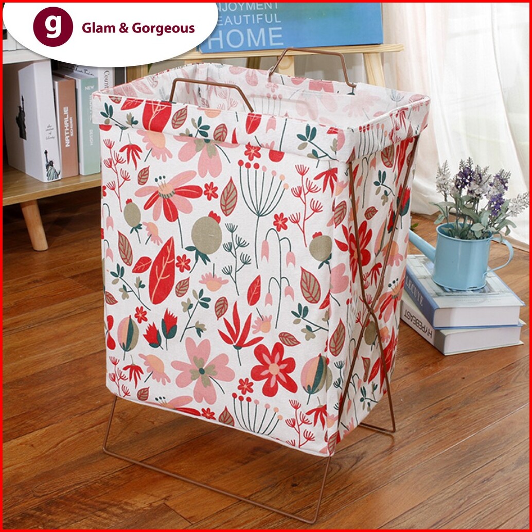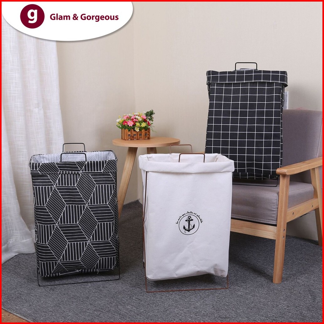 Keranjang Baju Cucian Pakaian Kotor Laundry Basket Dengan Rangka Kb010