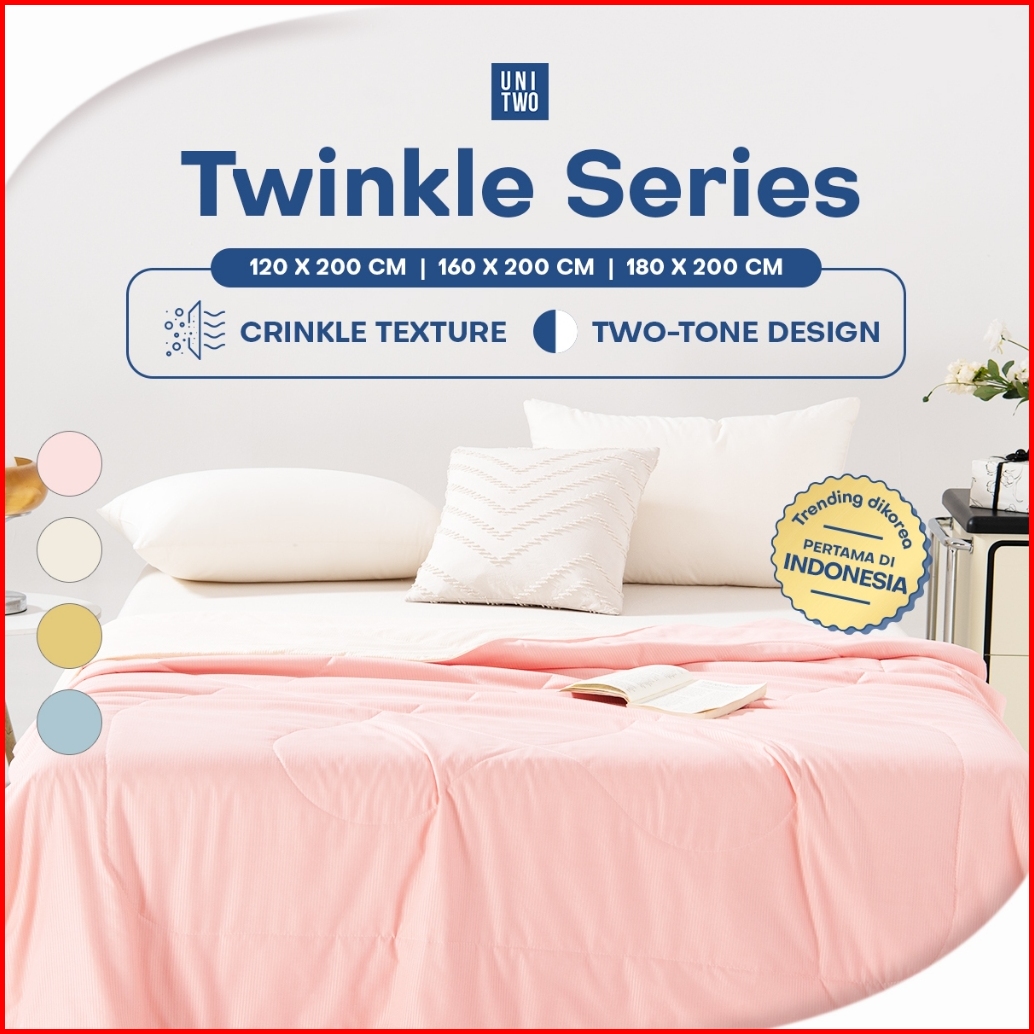 Unitwo Twinkle Series Bed Cover Korea Two Tone Airflow Crinkle Selimut Tidur Lembut Bahan Seersucker Motif Aesthetic Kar