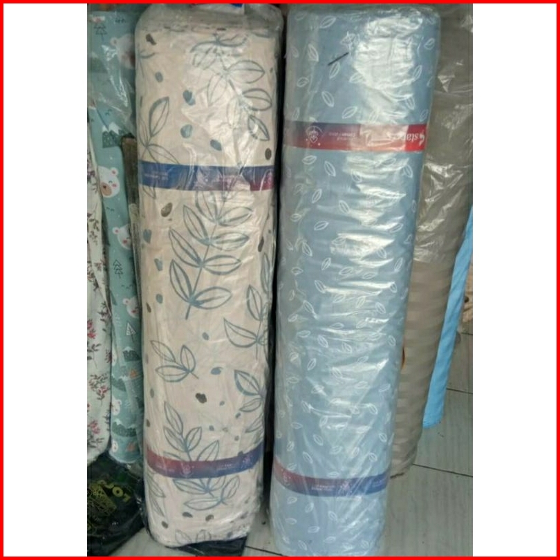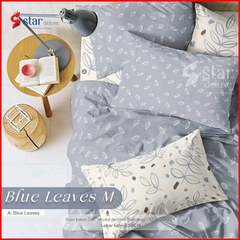 Bedcover Sprei Anti Geser Katun Star Motif Blue Leaves Kombinasi Bunga Putih Dan Biru