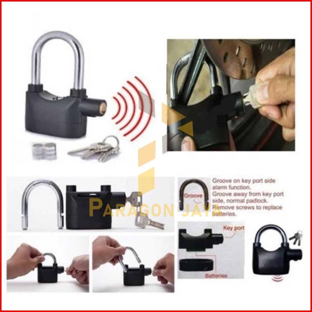 Gembok Alarm Kunci Gerbang Pintu Rumah Rantai Anti Maling Alarm Lock Gembok Rumah