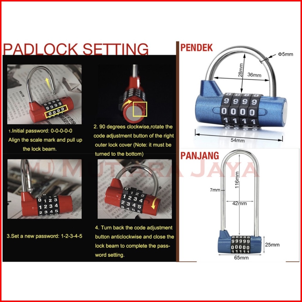 Gembok Angka Digit Pagar Pintu Motor Multifungsi Gembok Kombinasi
