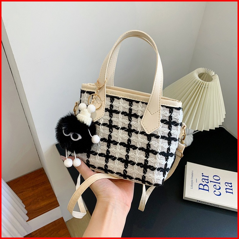 Lux Dd103 Tas Selempang Wanita Sling Bag Rajut Rami Gantungan Boneka Gemoy 531