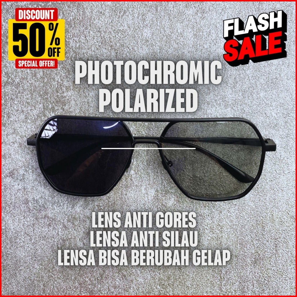 Sneakersshop17 Kacamata Pria Photochromic Coolshark Frame Stainless Anti Silau Anti Gores Sunglass Hitam Photohcromic