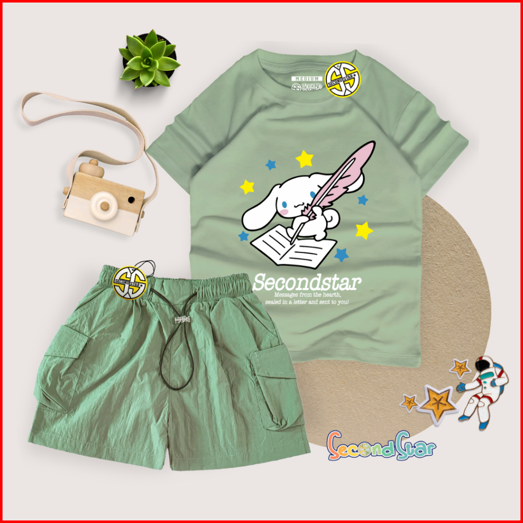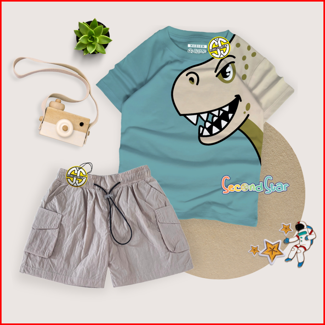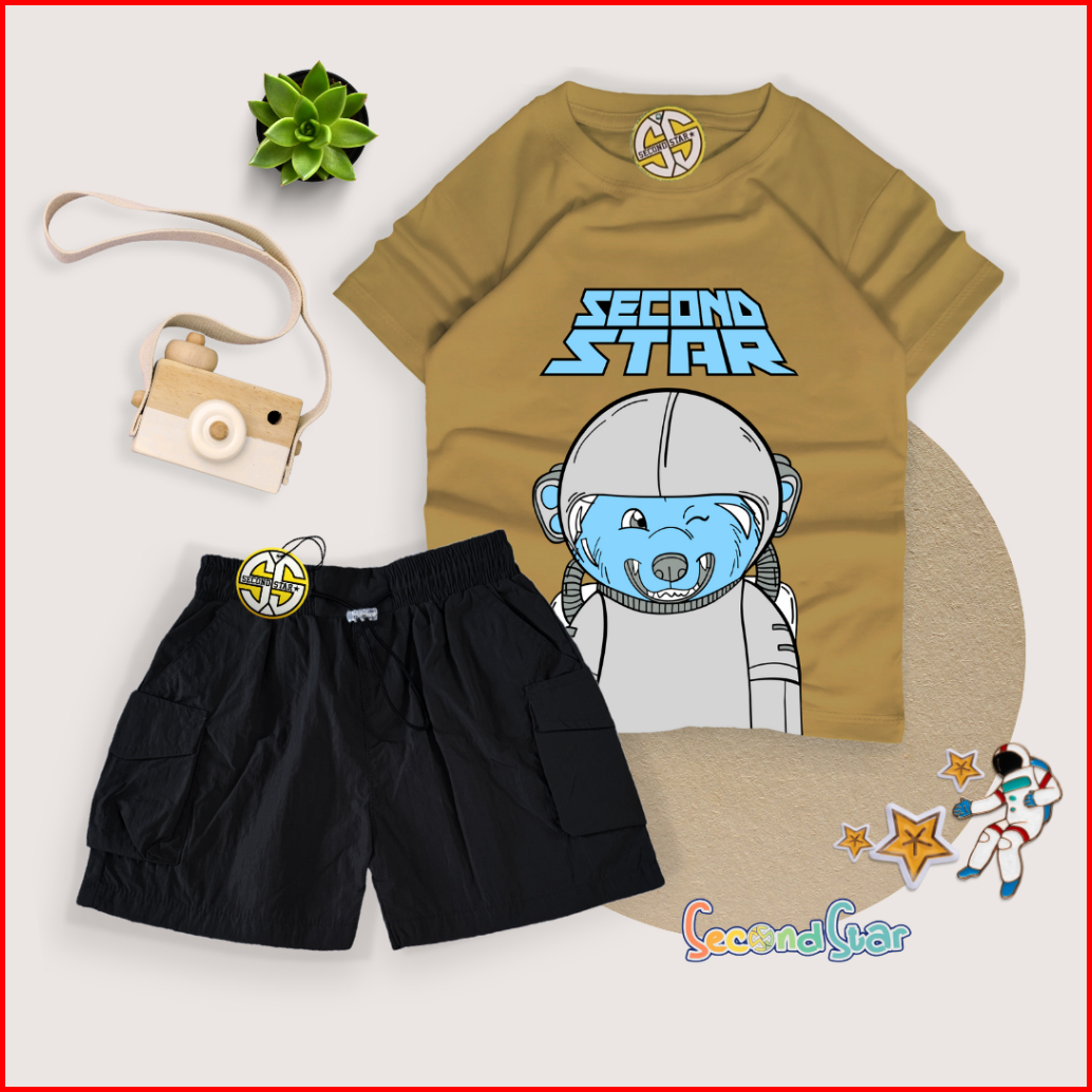 Second Star Setelan Anak Laki-laki Perempuan Usia 1-10 Tahun Bundle Kaos Distro Dan Celana Cargo