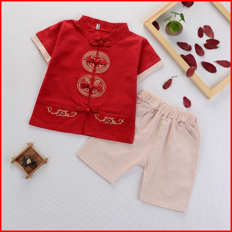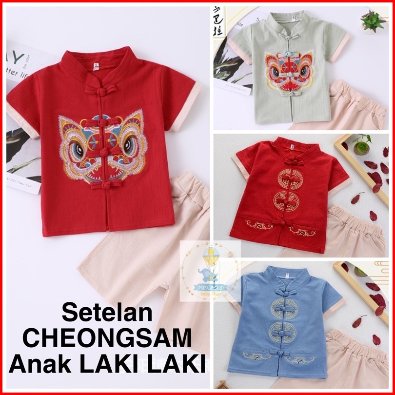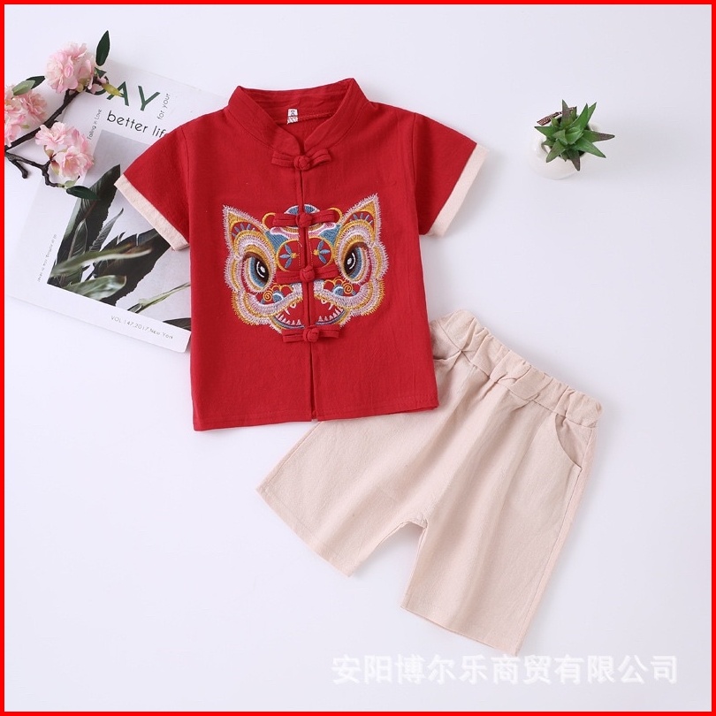 Cheongsam Anak Laki Laki Lucu Baju Imlek Barongsai Anak Laki Laki Qipau Set Anak Laki Laki
