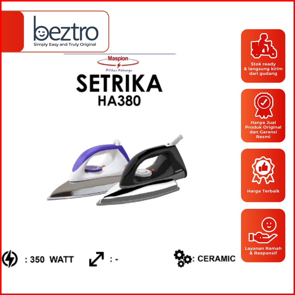 Maspion Setrika Kering Ha 380 Dry Iron Non Stick 350 Watt - Ha380