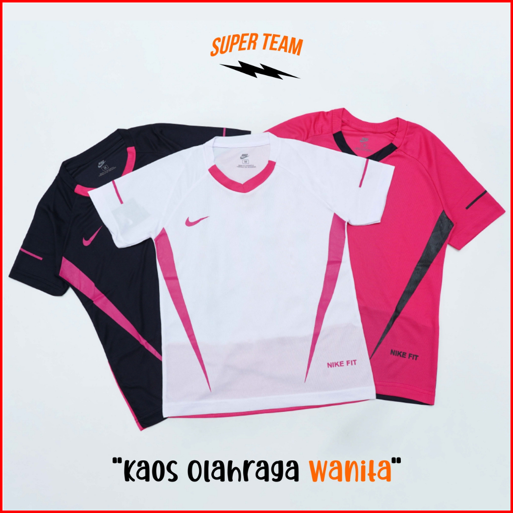 Baju Olahraga Wanita Jersey Basic Logo Bordir Women Sportwear Senam Badminton Lari Yoga Gym