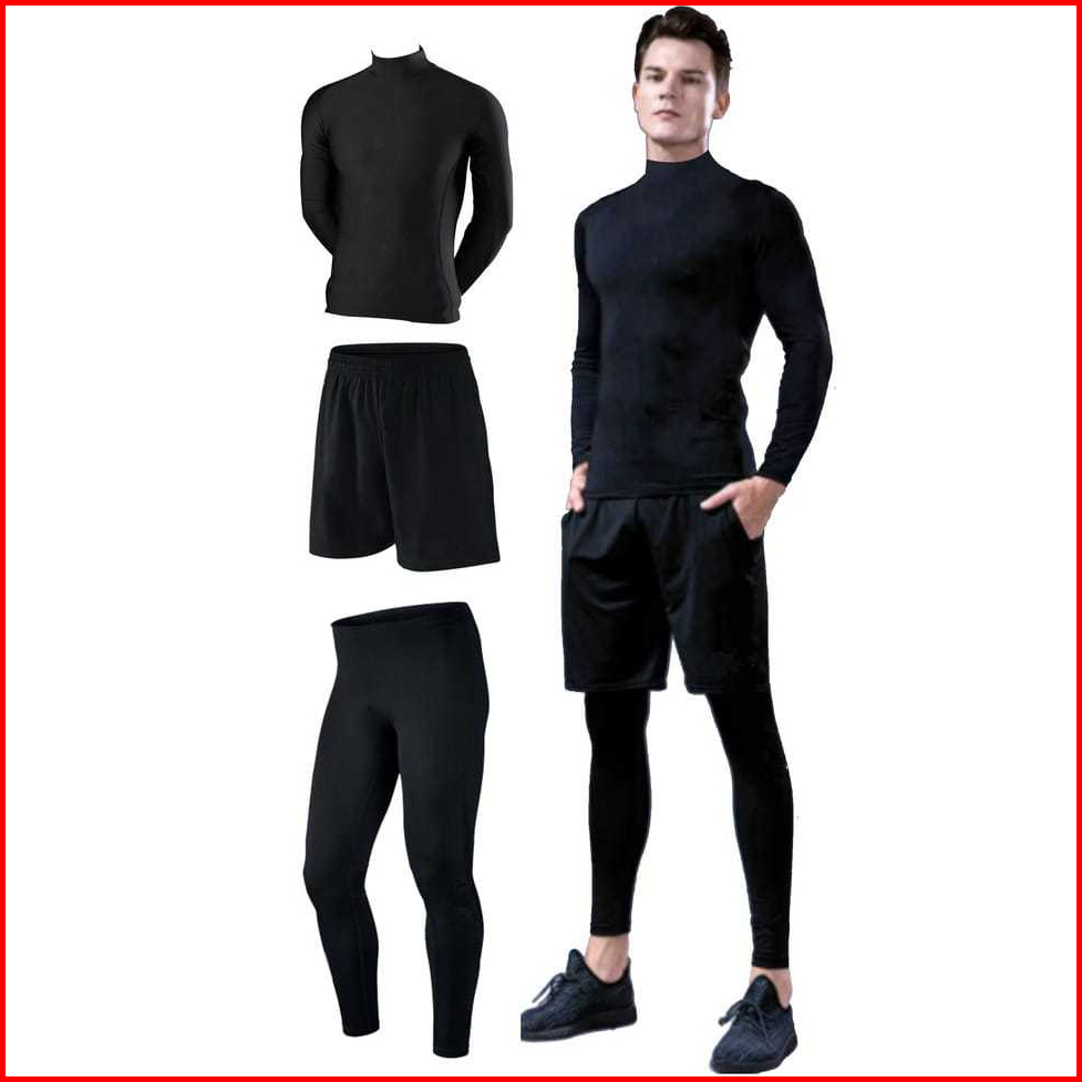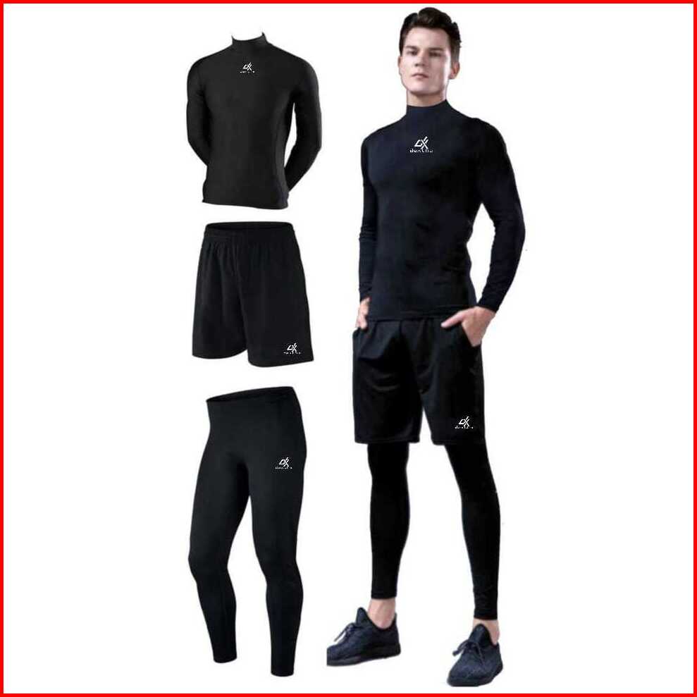 Dextha Sportswear Setelan Baselayer 3 In 1 Set Pakaian Olahraga Pria Sudah Dapat Manset Baju Lengan Panjang Celana Pende