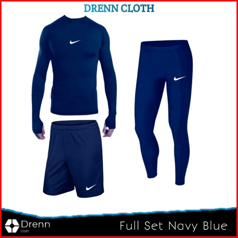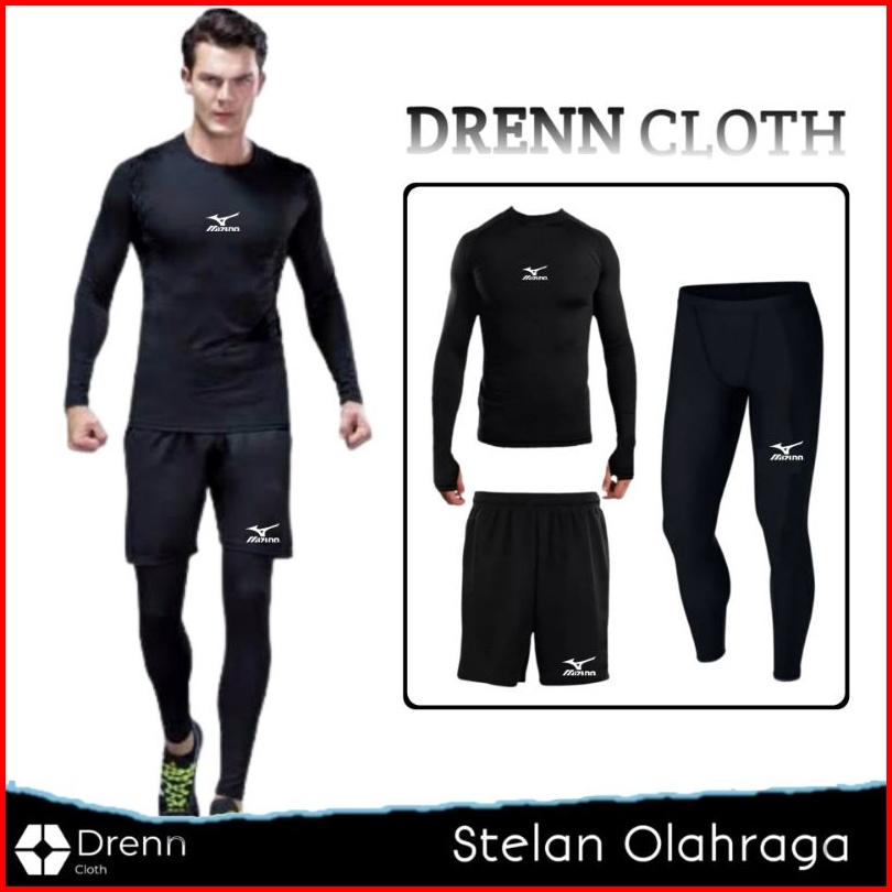 Full Set Baju Legging Celana Pendek Olahraga Pria Manset Baselayer Outdor Futsal Gym Lari Sepeda Senam Jogging