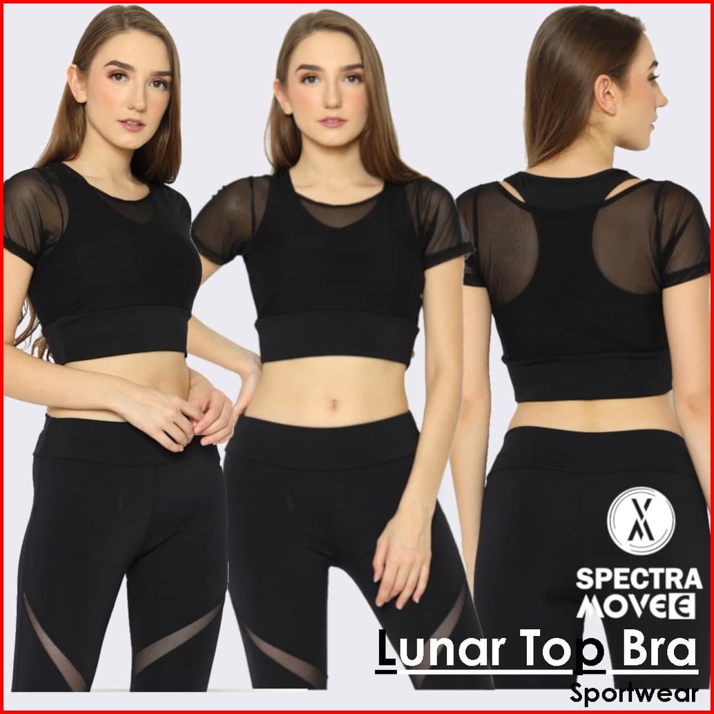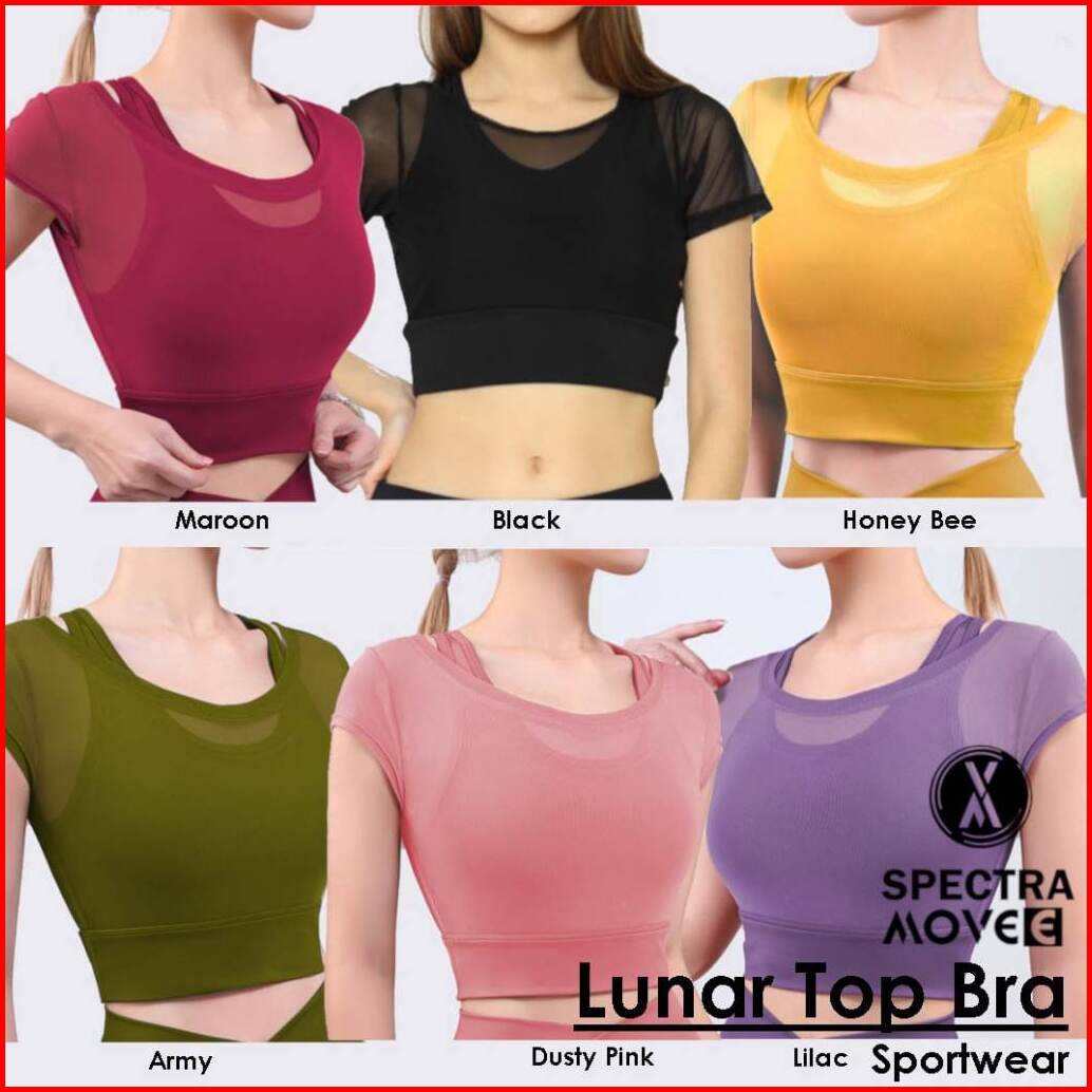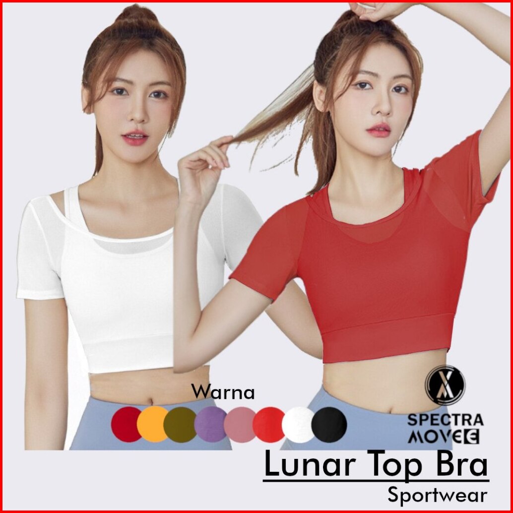 Baju Senam Lunar Top Bra Sport Kaos Crop Atasan Senam Outer Tile Baju Zumba Baju Sport Bandung