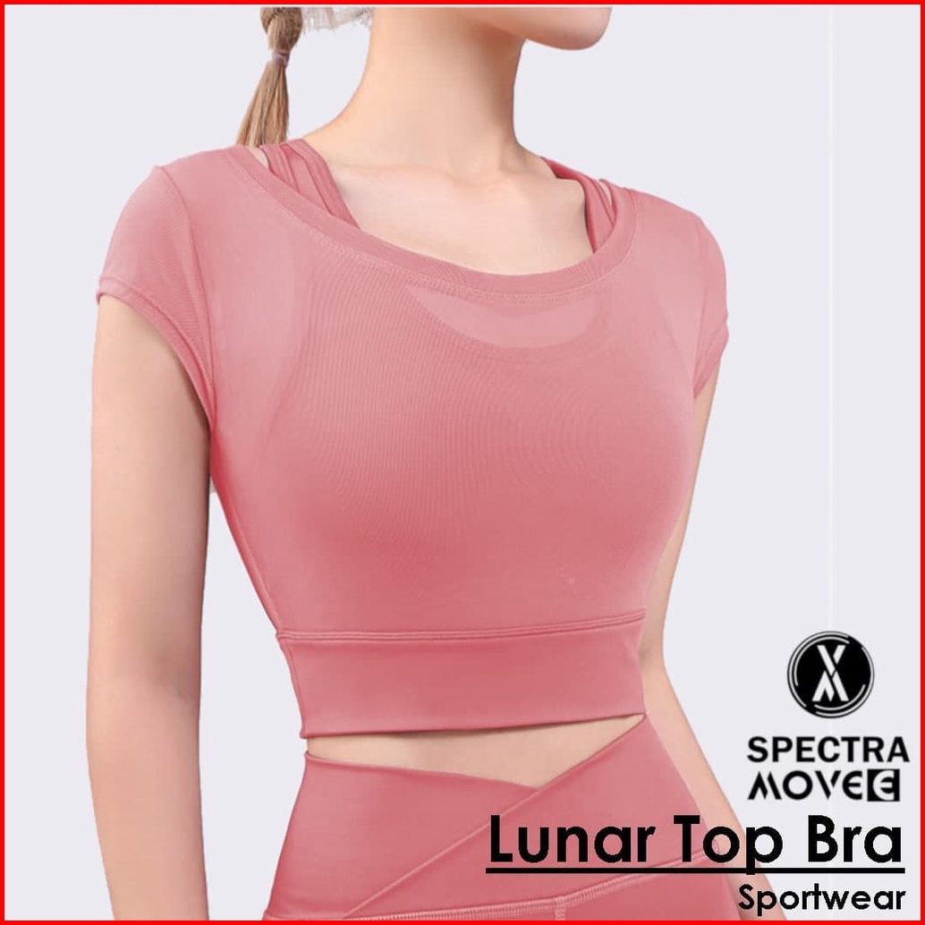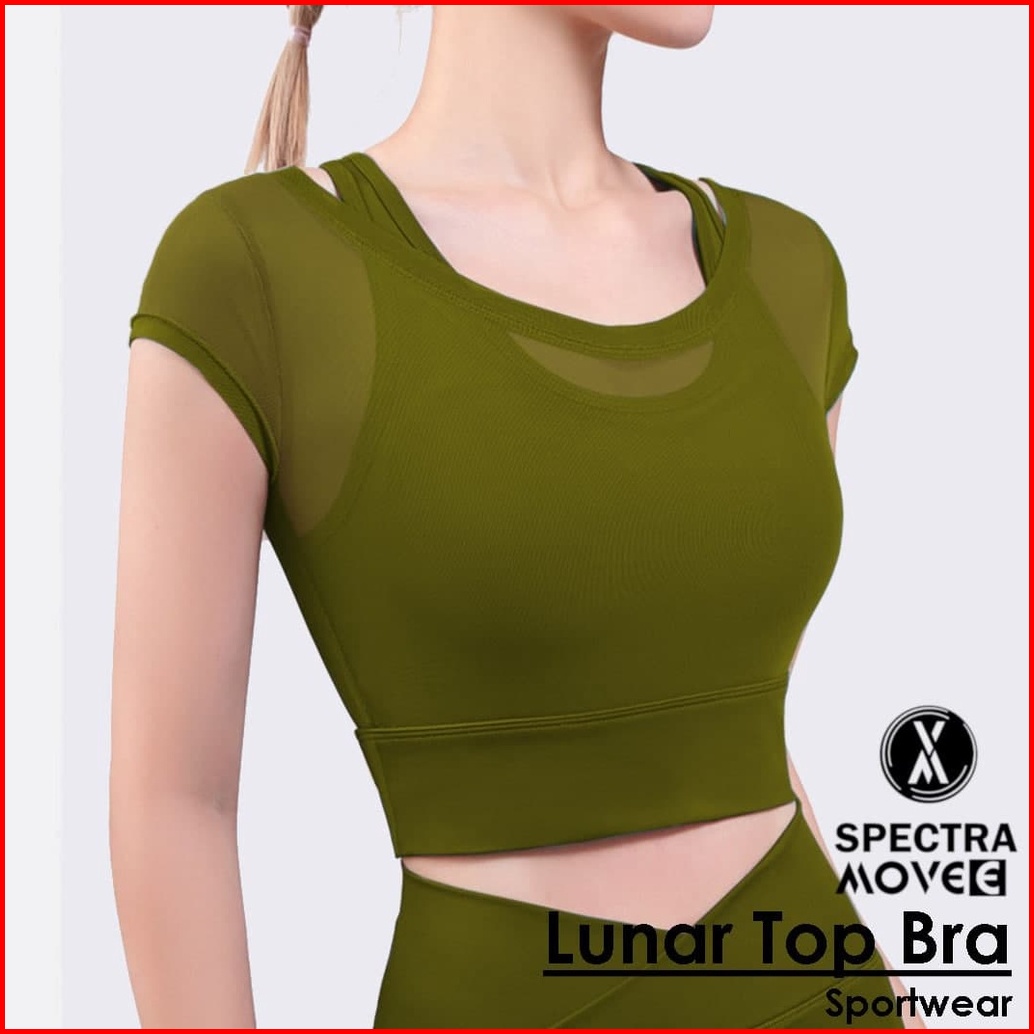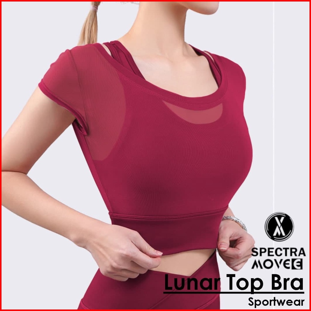 Baju Senam Lunar Top Bra Sport Kaos Crop Atasan Senam Outer Tile Baju Zumba Baju Sport Bandung