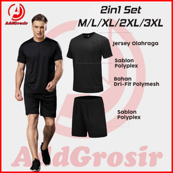 Setelan 2in1 Jersey Celana Pendek Olahraga Pria Futsal Lari Badminton Gym