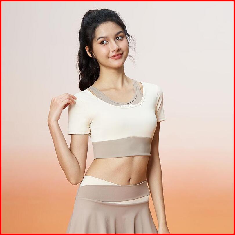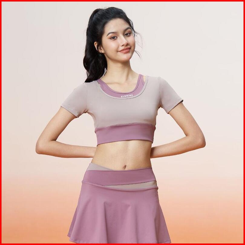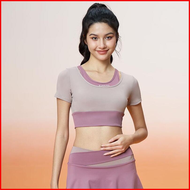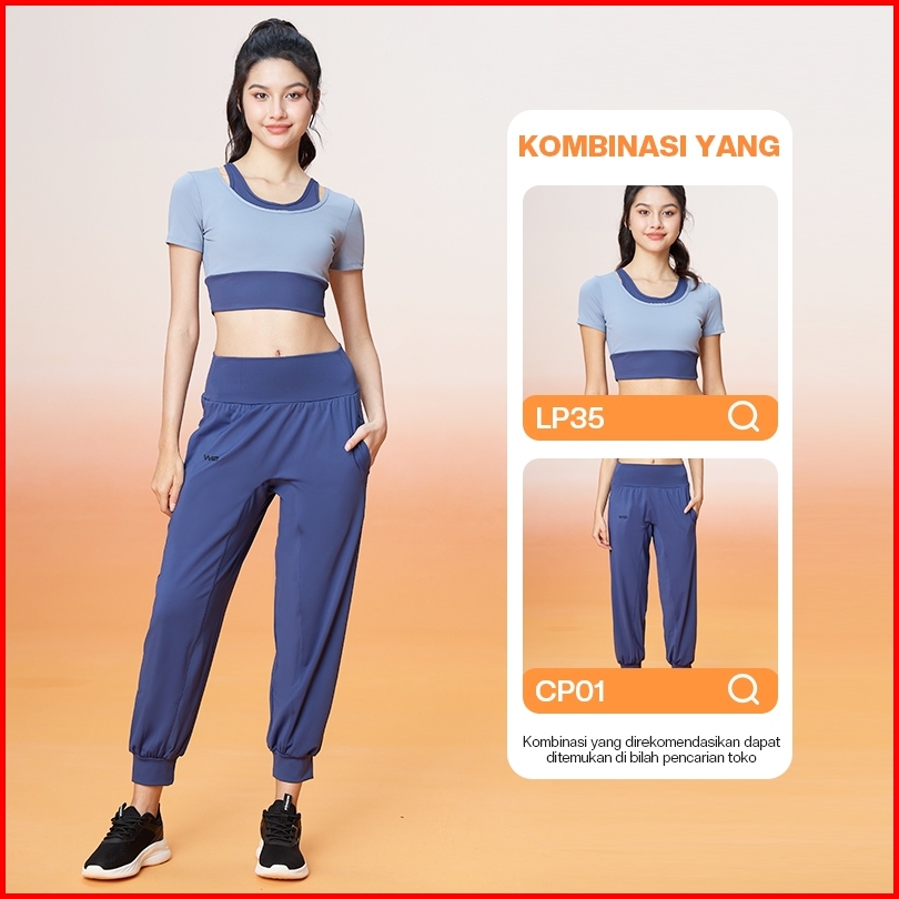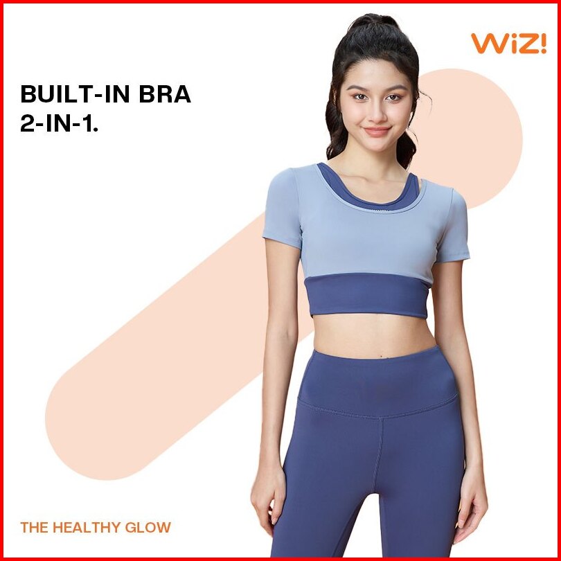 Wizi Baju Olahraga Wanita Kaos Sport Baju Lengan Pendek Wanita Gym Yoga Built-in Bra Lp35