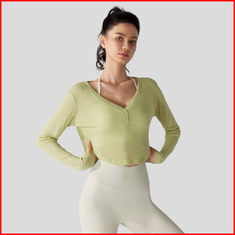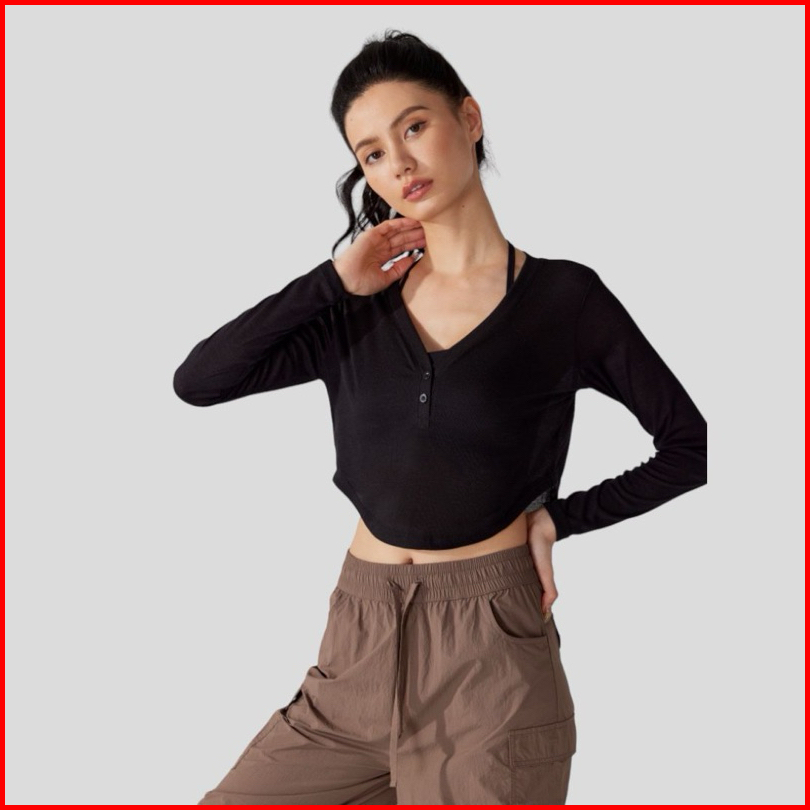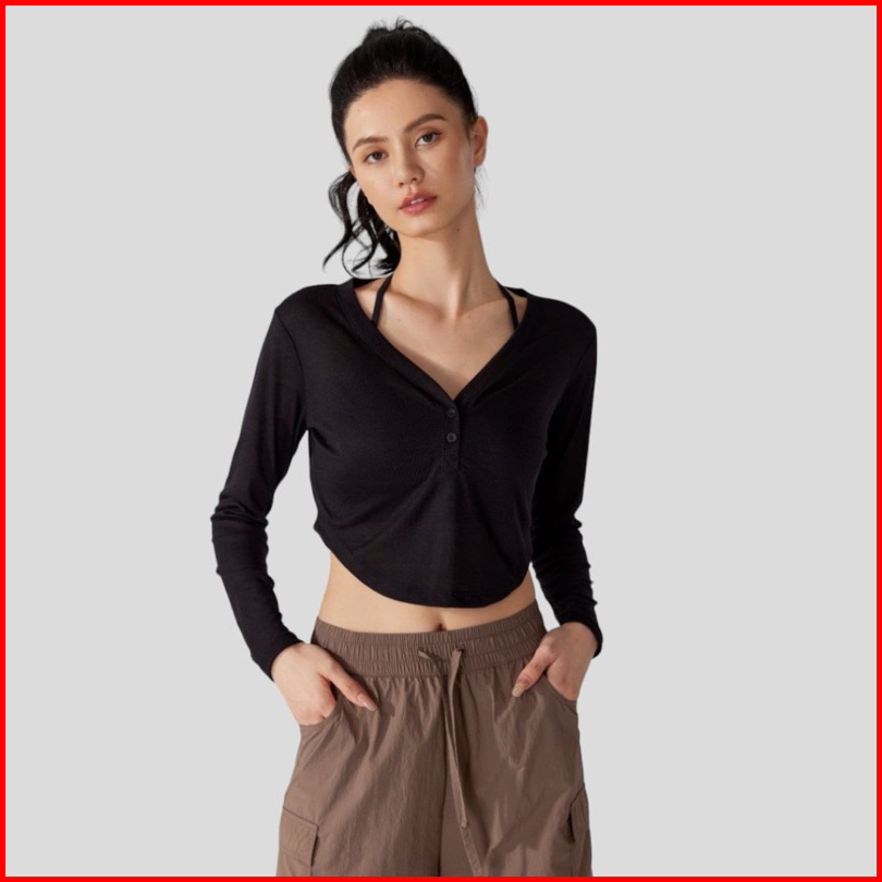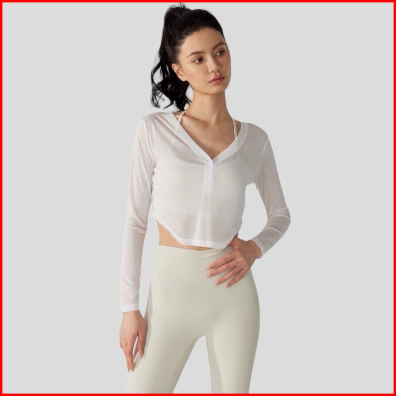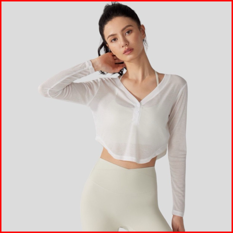 Nolds Baju Olahraga Wanita Btp Crop Lengan Panjang Kancing Gym Fitnes