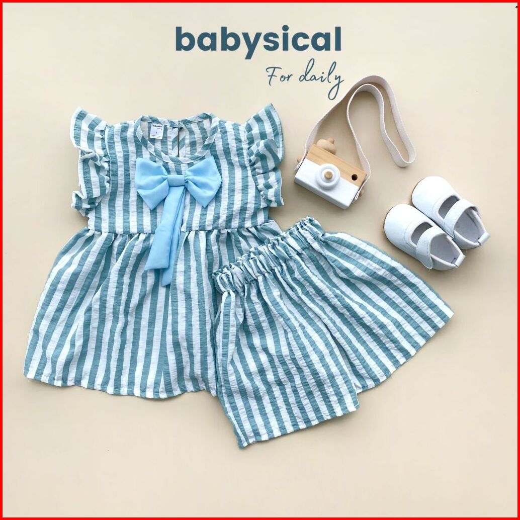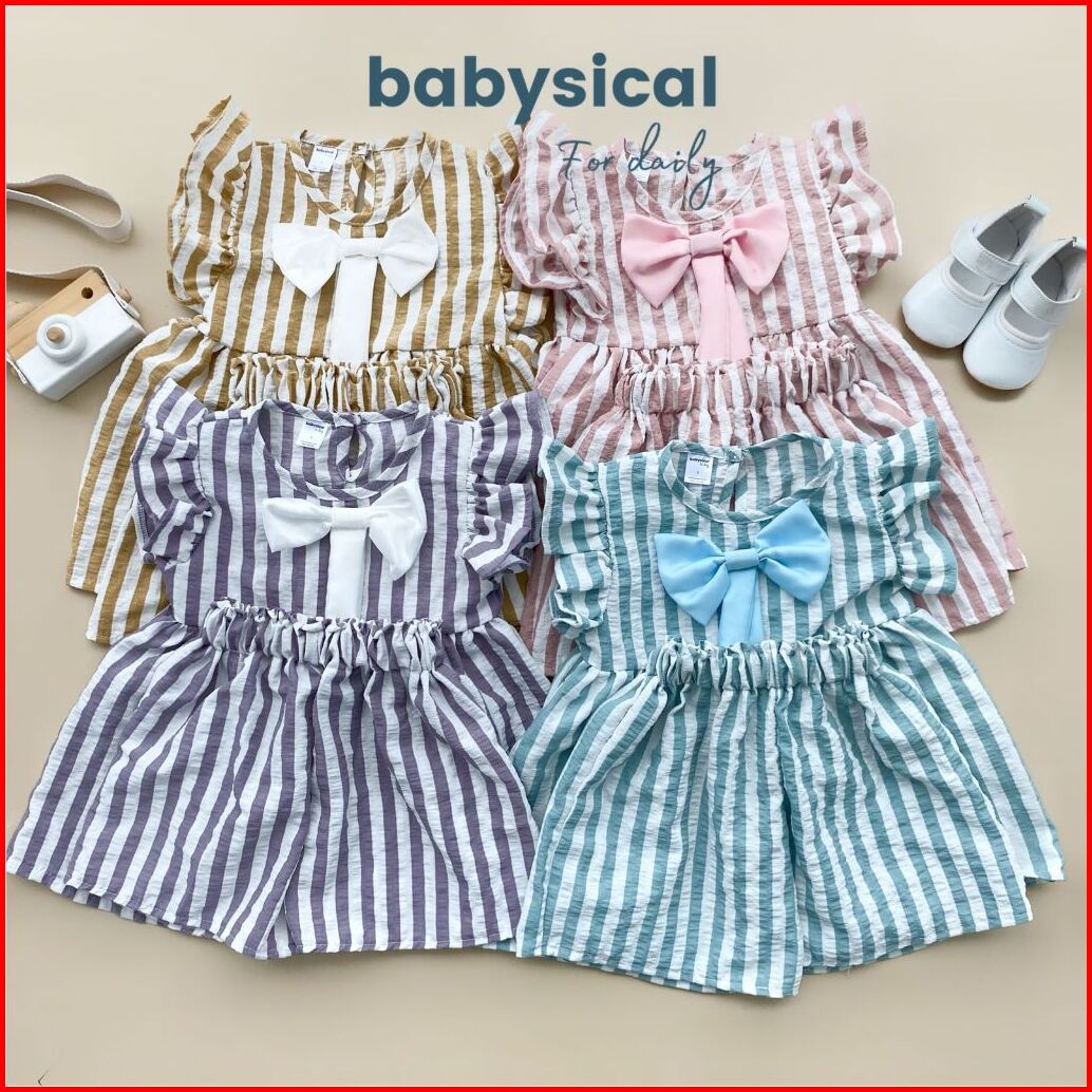 Babysical 1-6 Tahun Bonia Ribbon Strip Set - Set Baju Anak Perempuan Lucu Rayon Setelan Baju Anak Perempuan Dress Celana