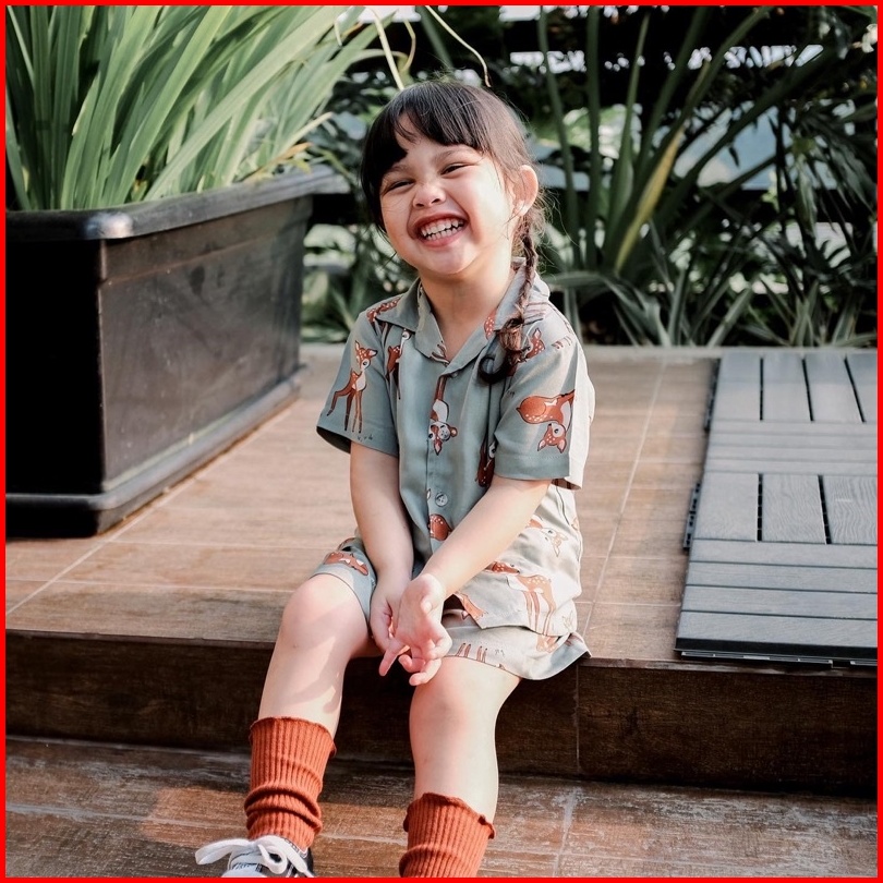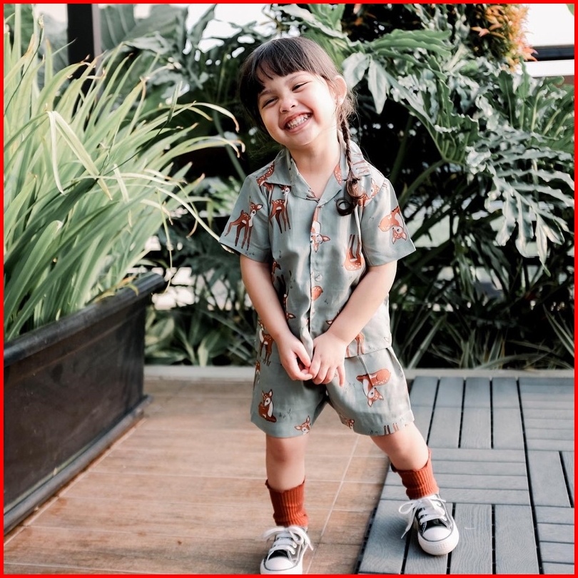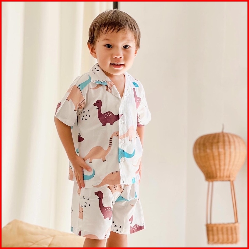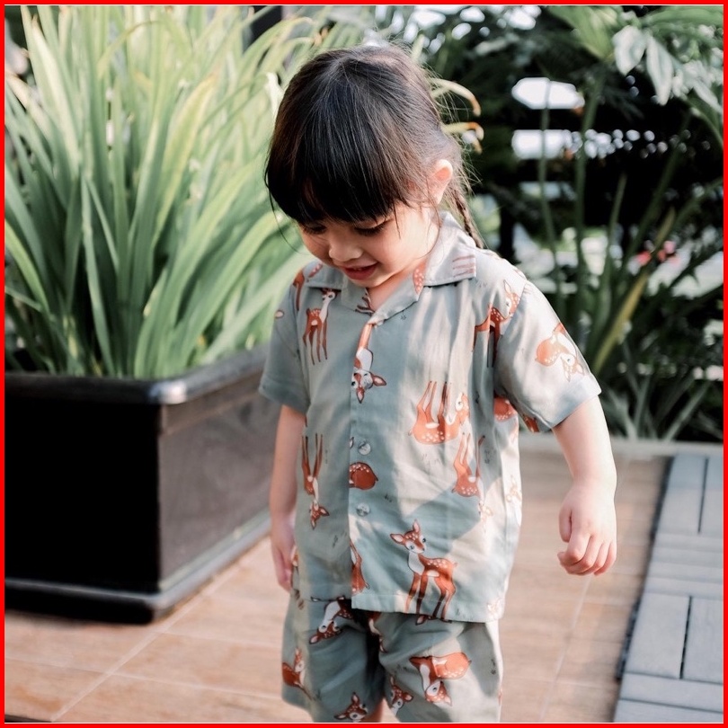 Joyfulbaby Setelan Oneset Anak Rayon Kerah Celana Pendek Unisex