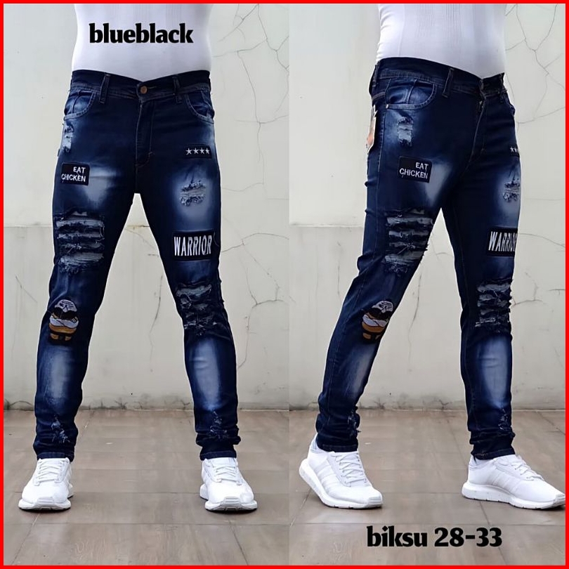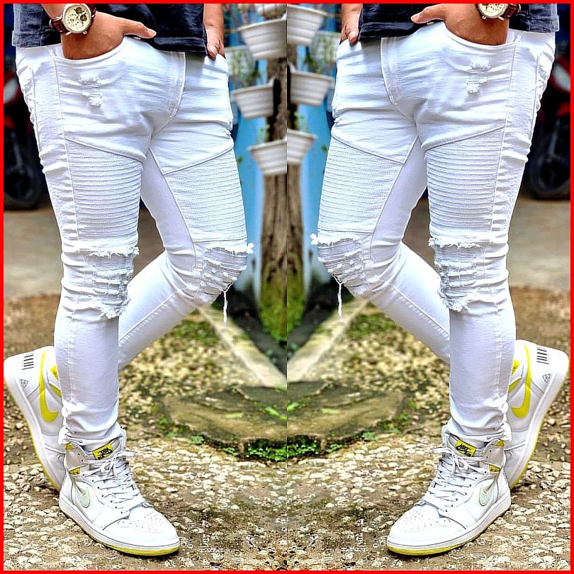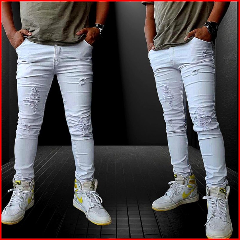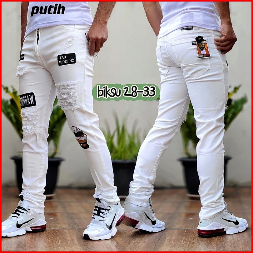 Celana Pria Jeans White Sobek Emblem Ripped Stretch