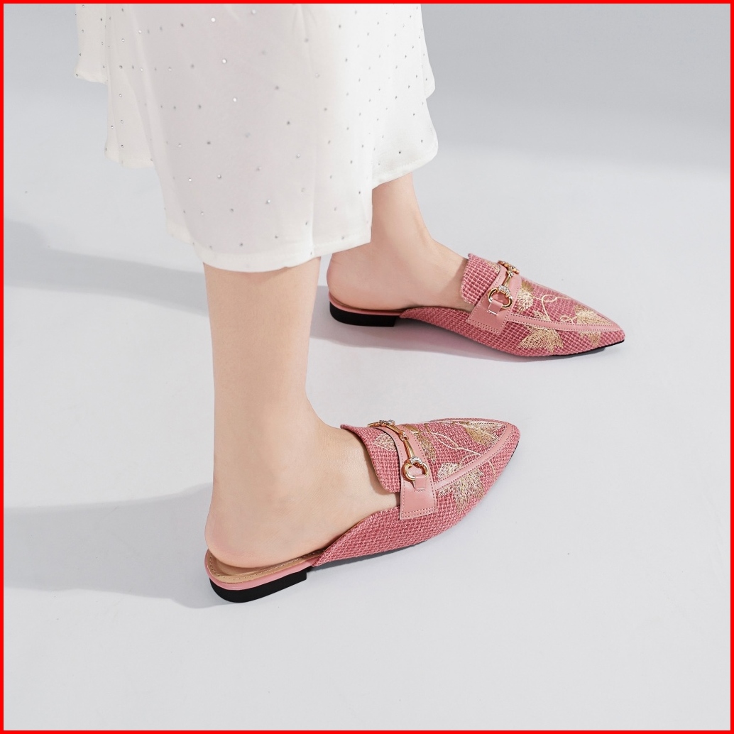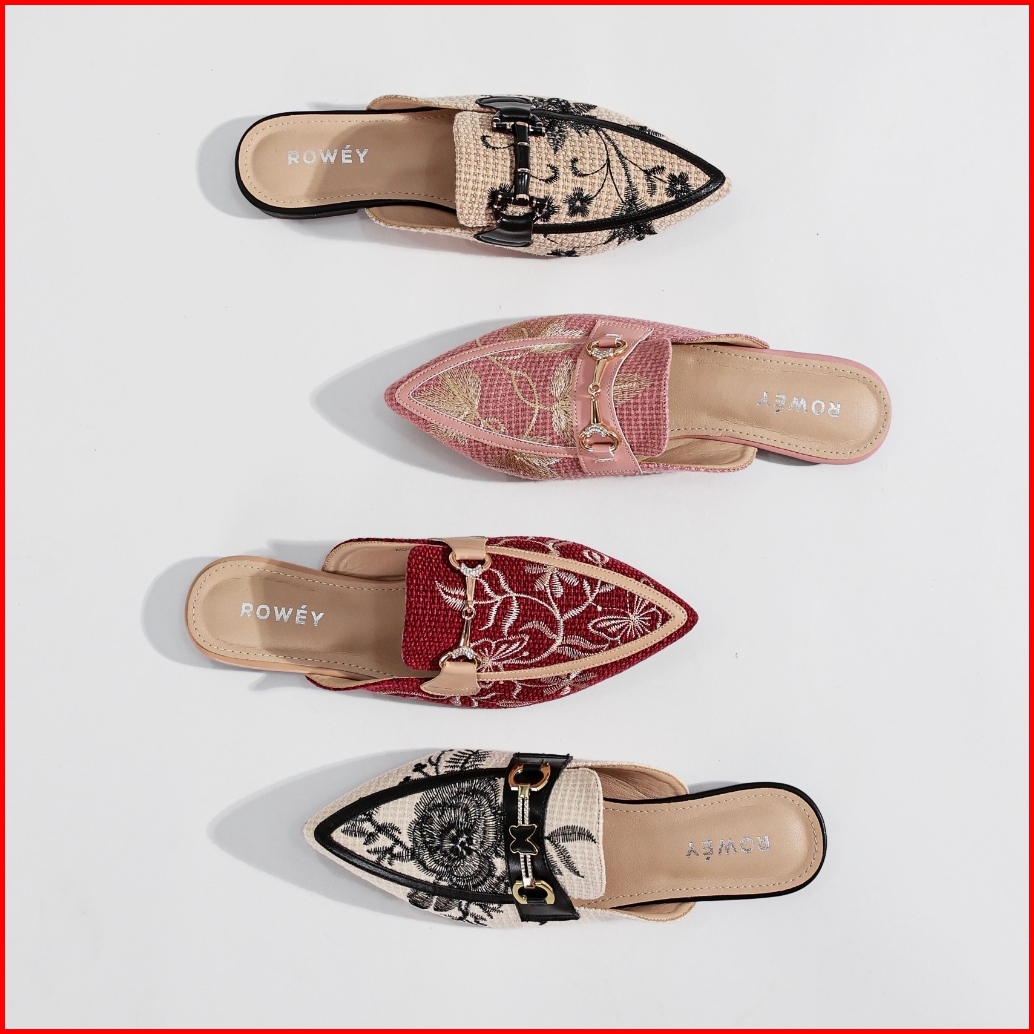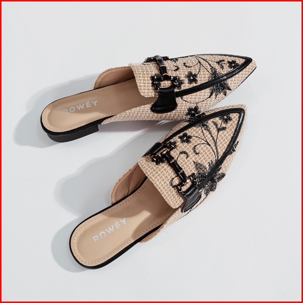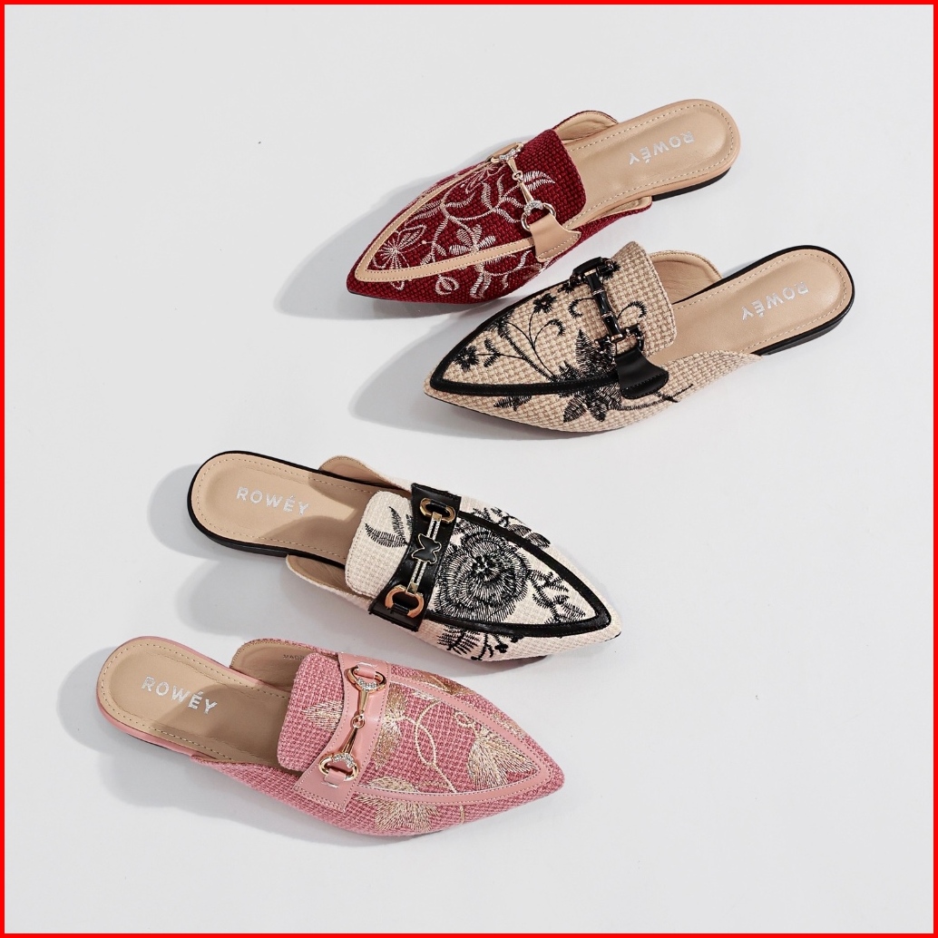 Rowey Sandal Mules Wanita Flat Shoes London Praha Moscow Madrid