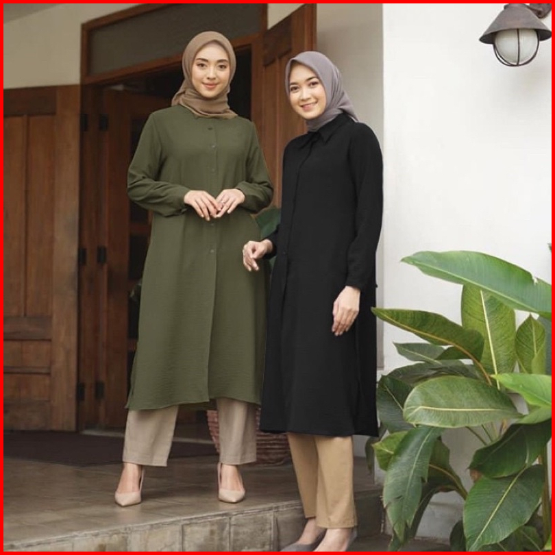 Laudya Long Tunik Basic Polos Kemeja Tunik Jumbo Cutting Dan Jahitan Rapi