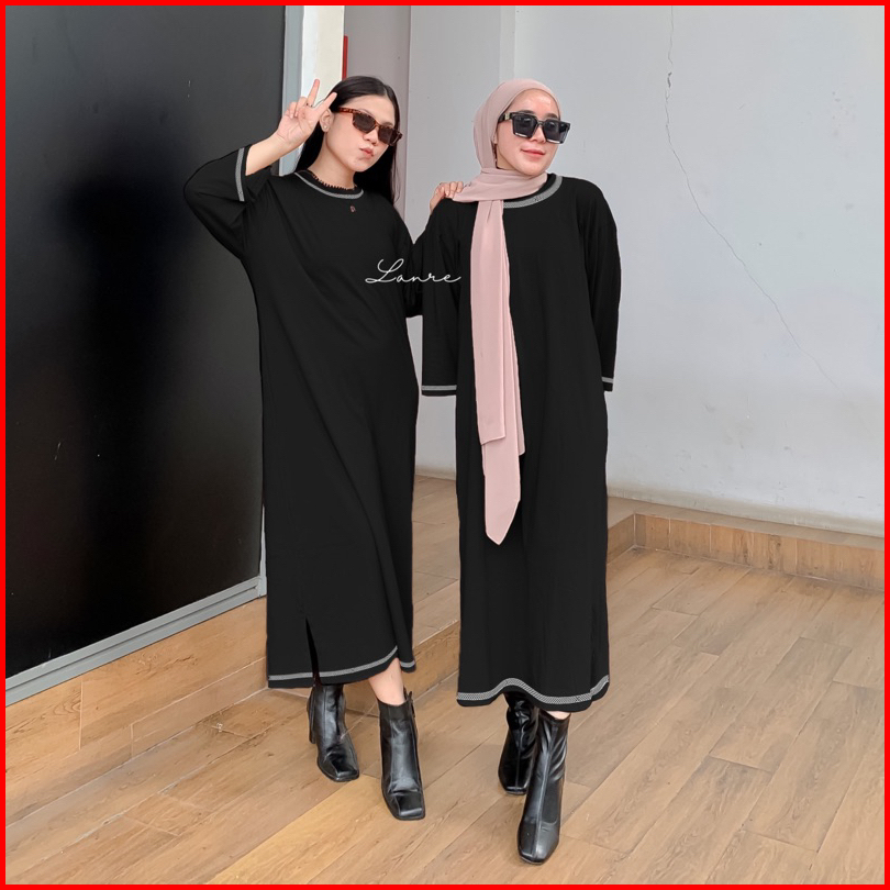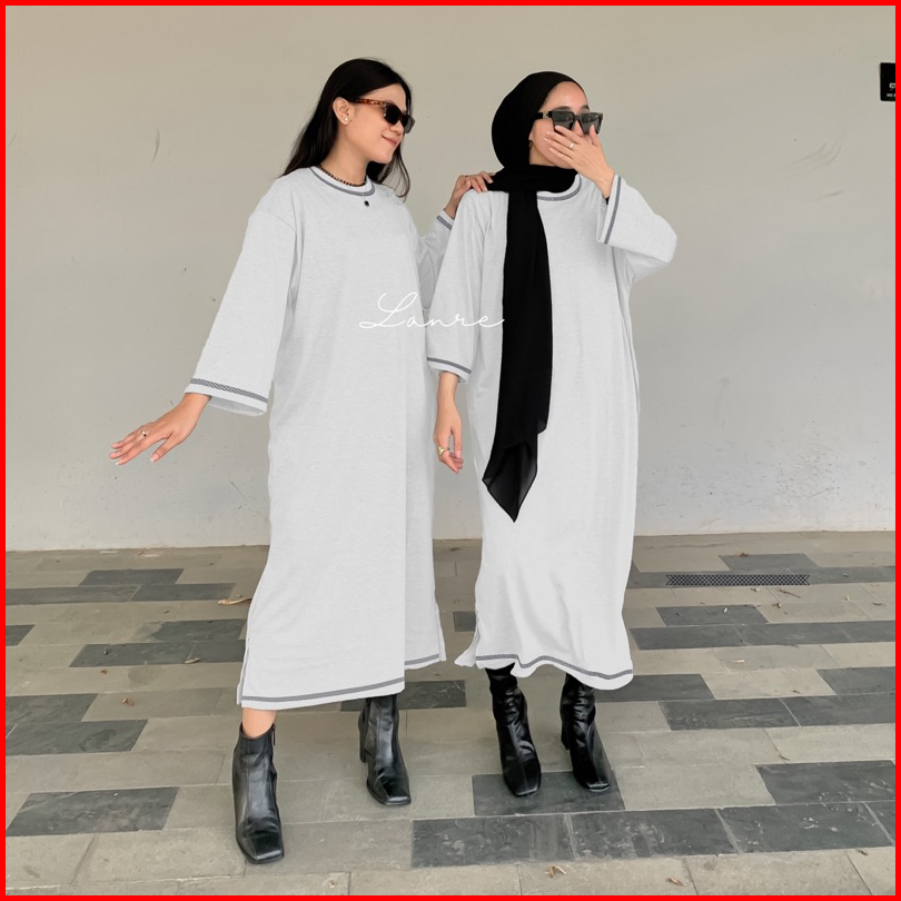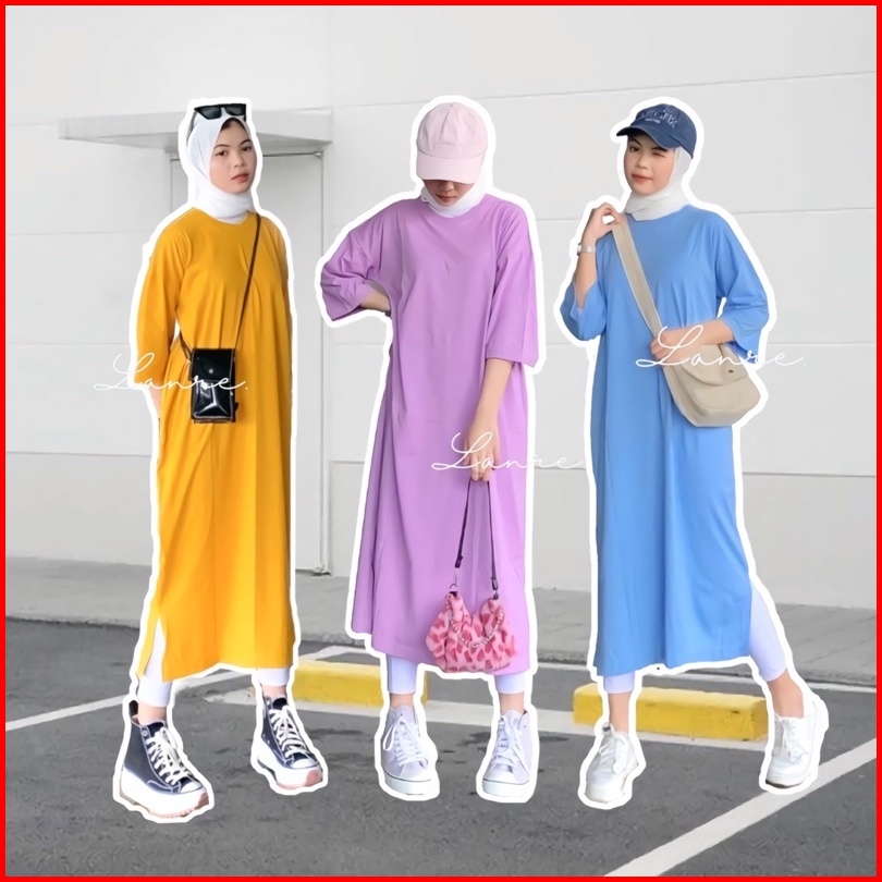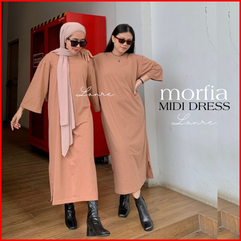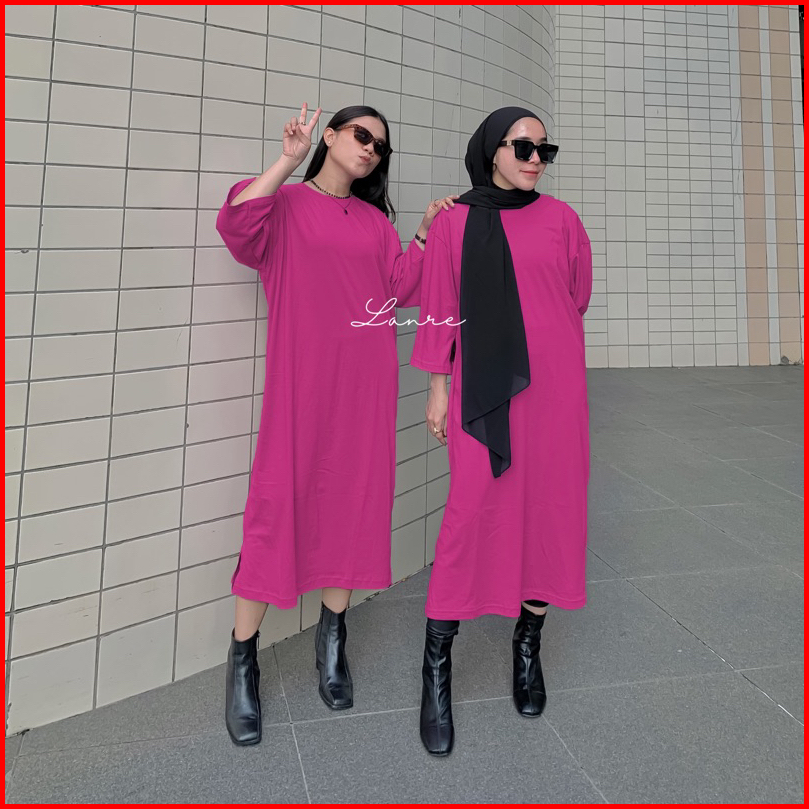 Morfia Long Basic Tee Oversize Tunik Busui Polos Midi Dress Jumbo