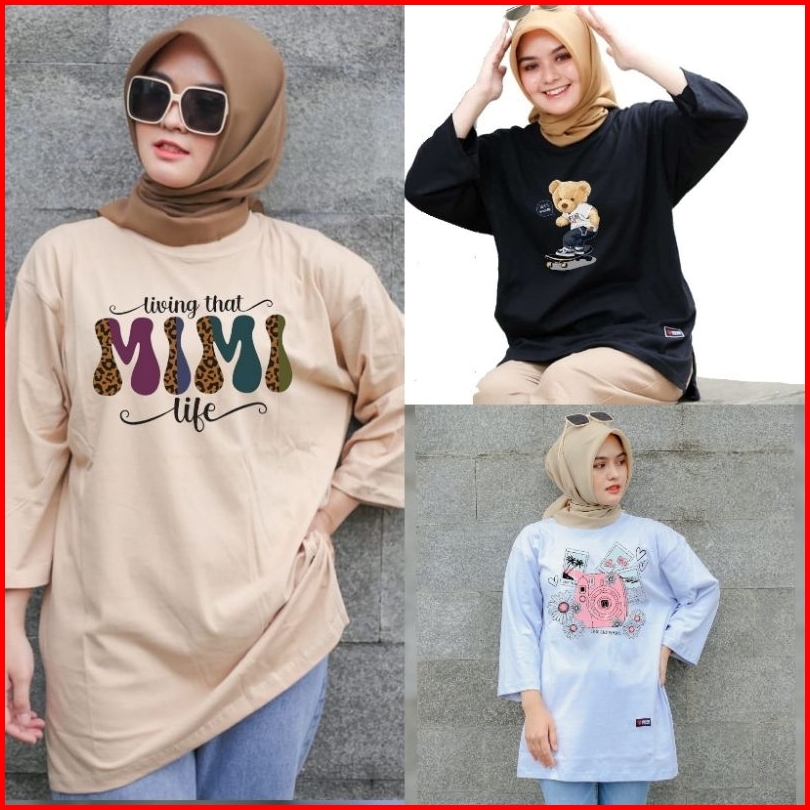 Baju Kaos Oversize Wanita Hijab Design Dtf Fashionable Cotton Combed 24s Beli 4 Gratis 1 Acak