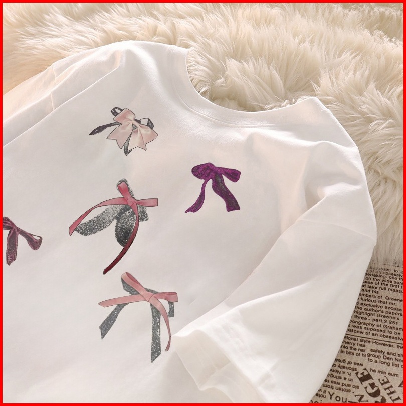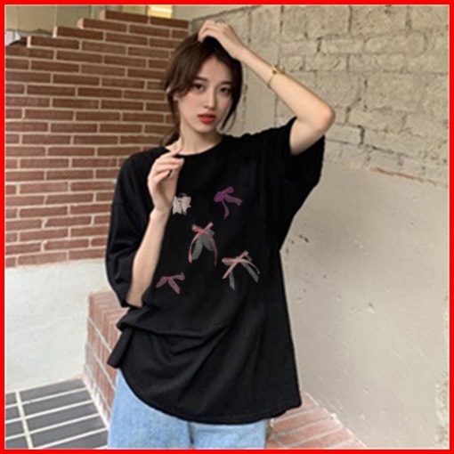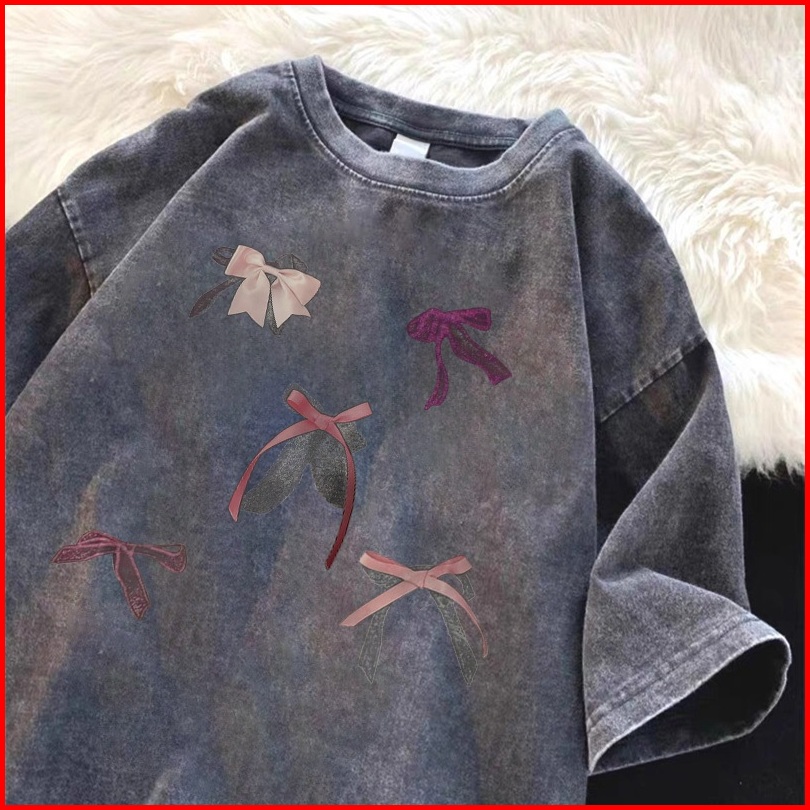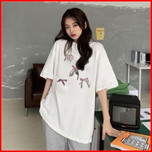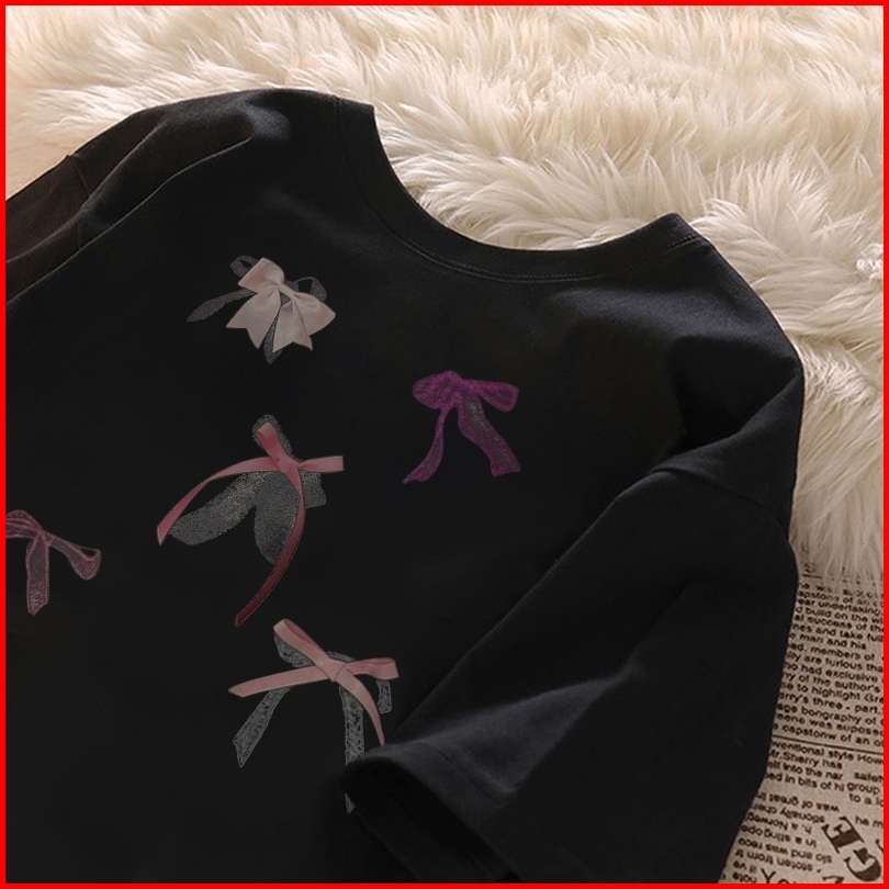 Forteid T-shirt Lengan Pendek Baju Kaos Oversize Wanita Baju Kaus Wanita Korea Baju Atasan Wanita Terbaru Cetakan Busur