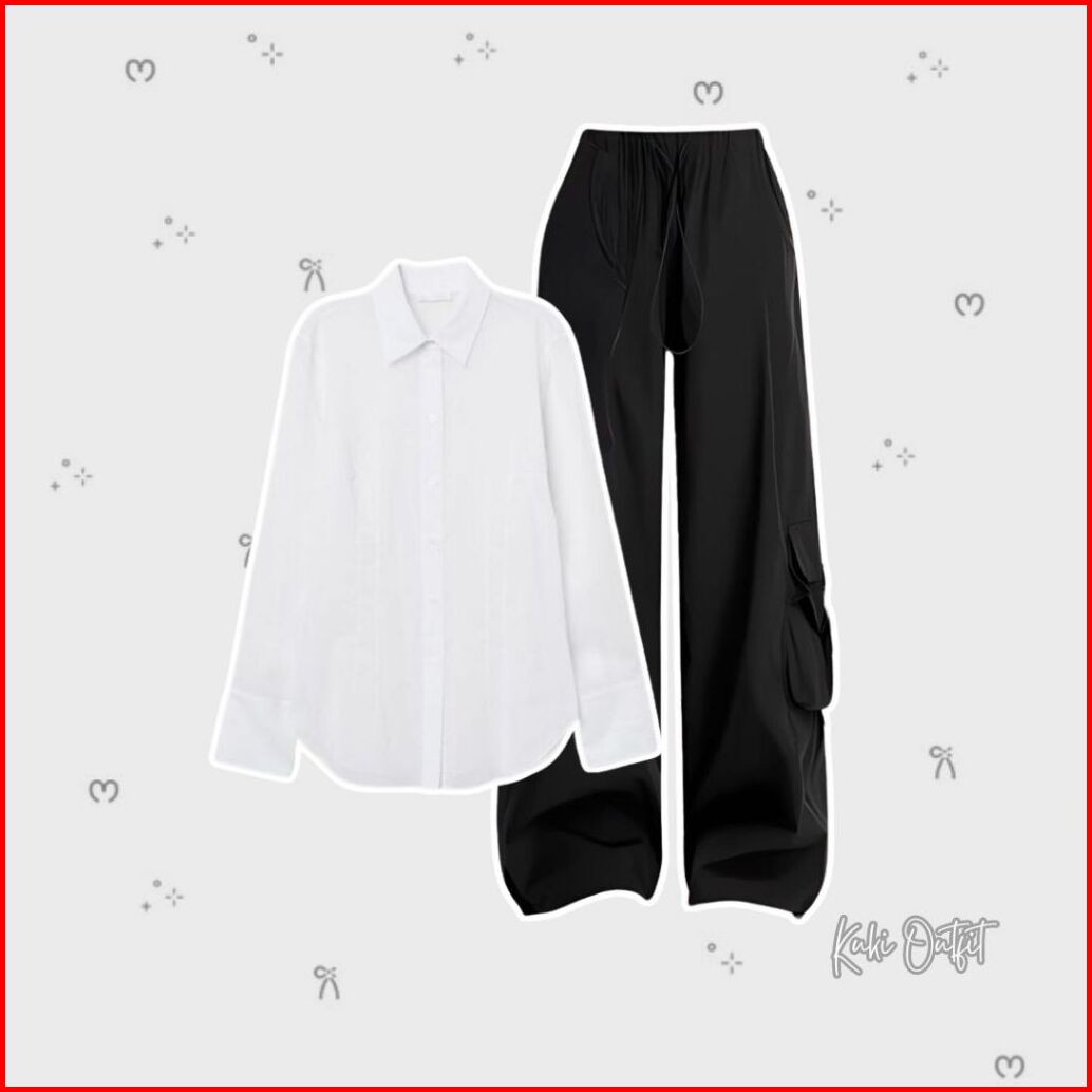 Ootd One Set Perempuan Vest Rajut Kemeja Celana Cargo Outfit Korean Style - Kk123