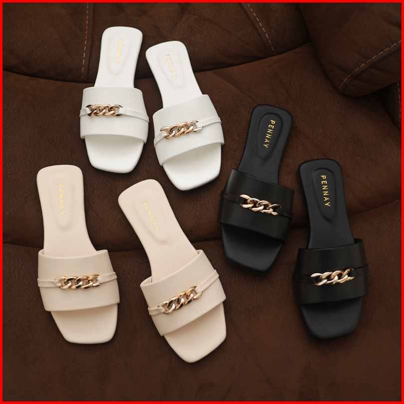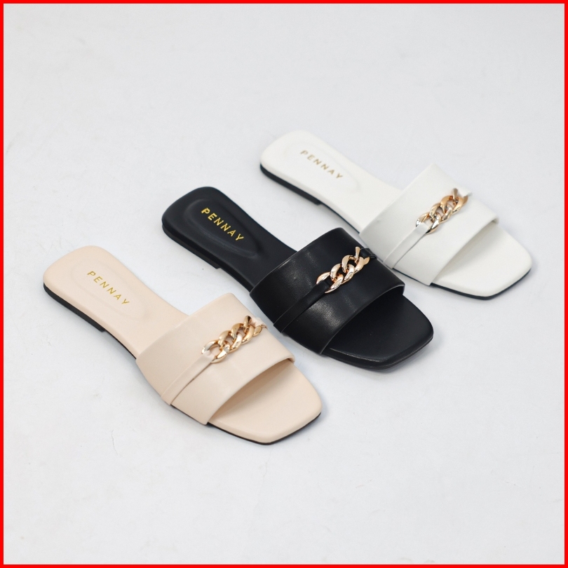 Pennay Cristy Sandal Wanita Flat Teplek Slip On Anti Slip Kekinian Elegan Nyaman Dipakai Harian