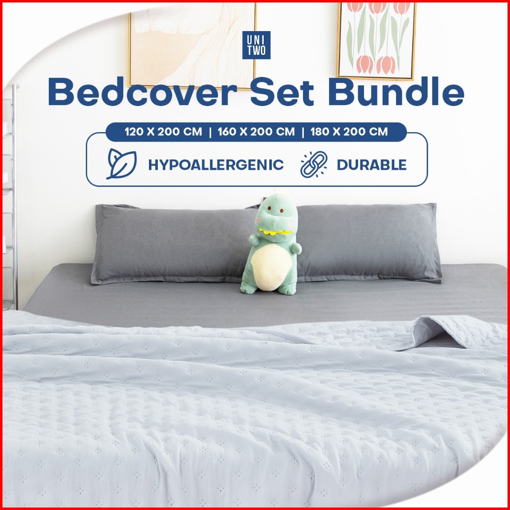 Unitwo Bed Cover Sprei Set Bed Cover Set Dengan Sprei Set Sarung Bantal Dan Sarung Guling Full Pressing Karet Keliling K