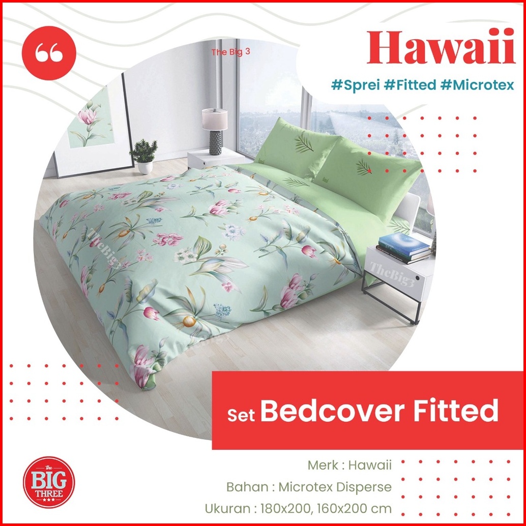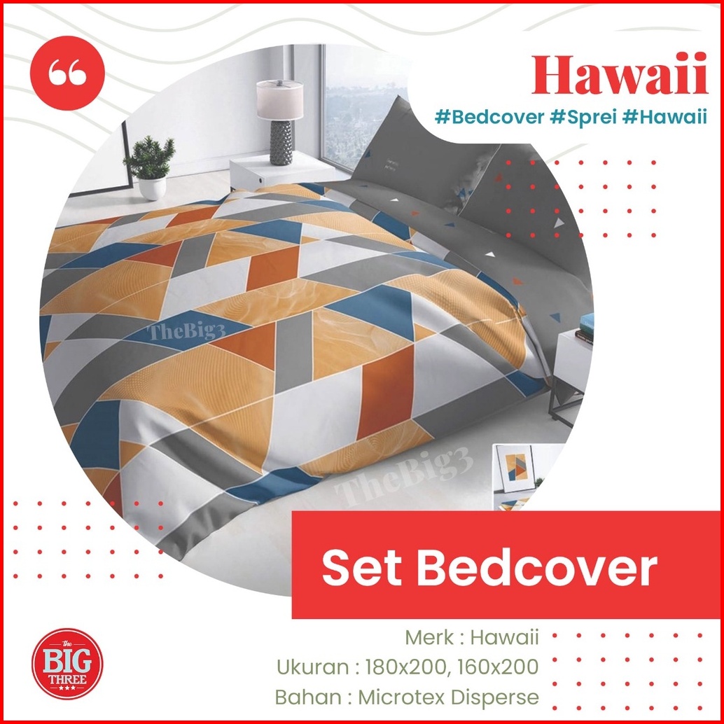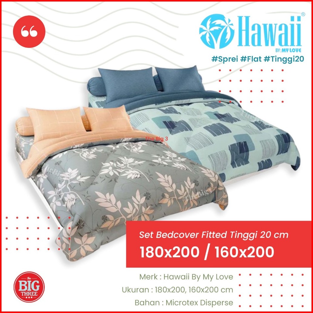 Thebig3 Hawaii Set Bedcover Sprei 180x200 160x200 Bedcover Saja Tinggi 20 Cm Microtex