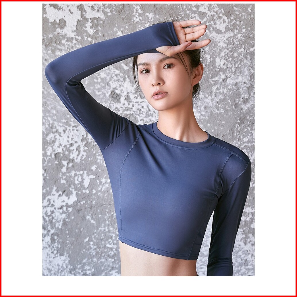 Baju Olahraga Wanita Atasan Cropp Polos Lengan Panjang Yf001