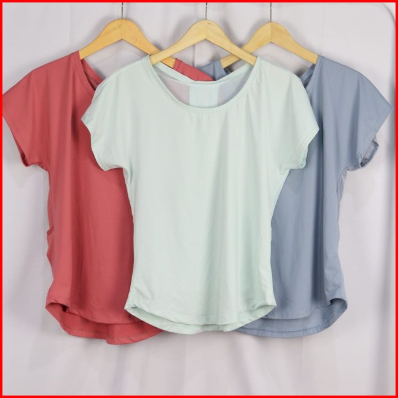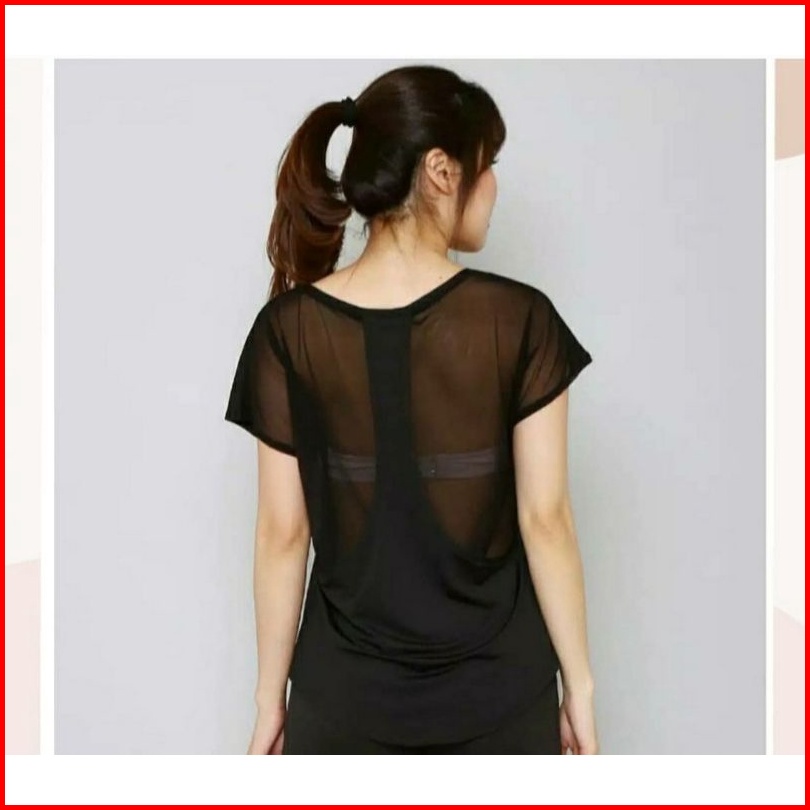 Atasan Baju Kaos Olaraga Senam Aerobic Yoga Zumba Wanita Jaring Belakang High Quality Yn.011