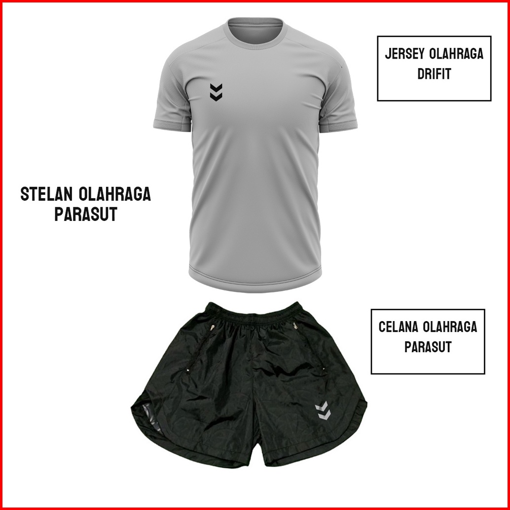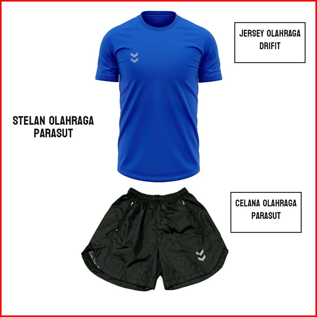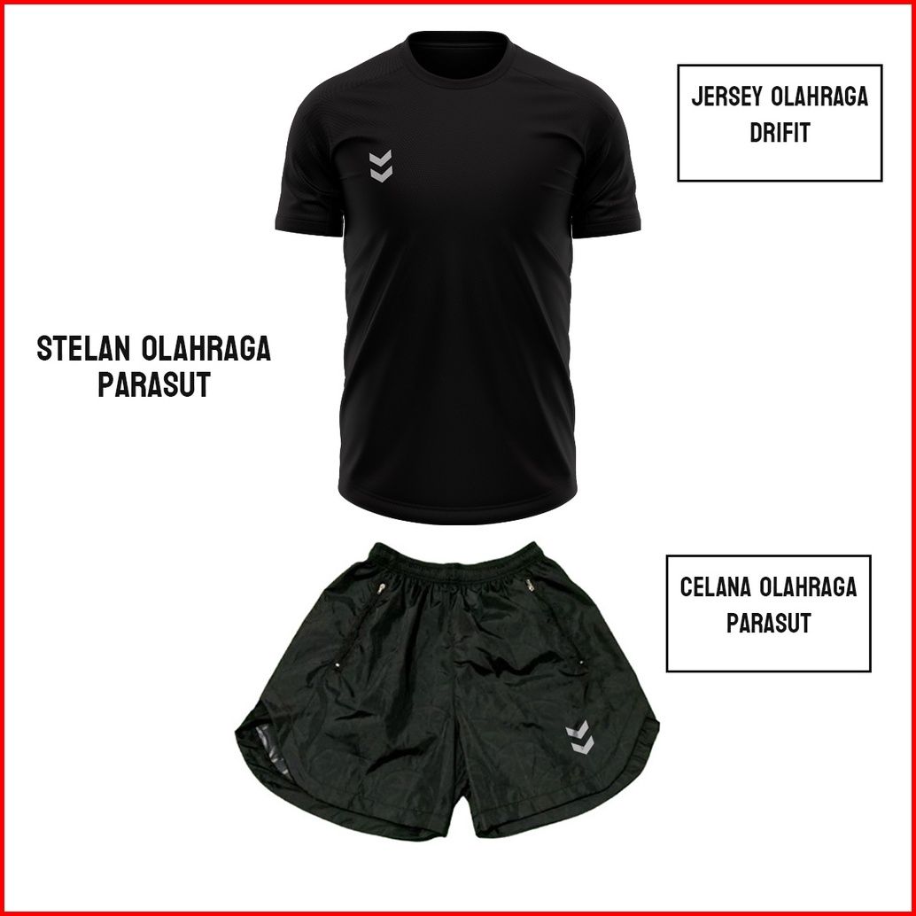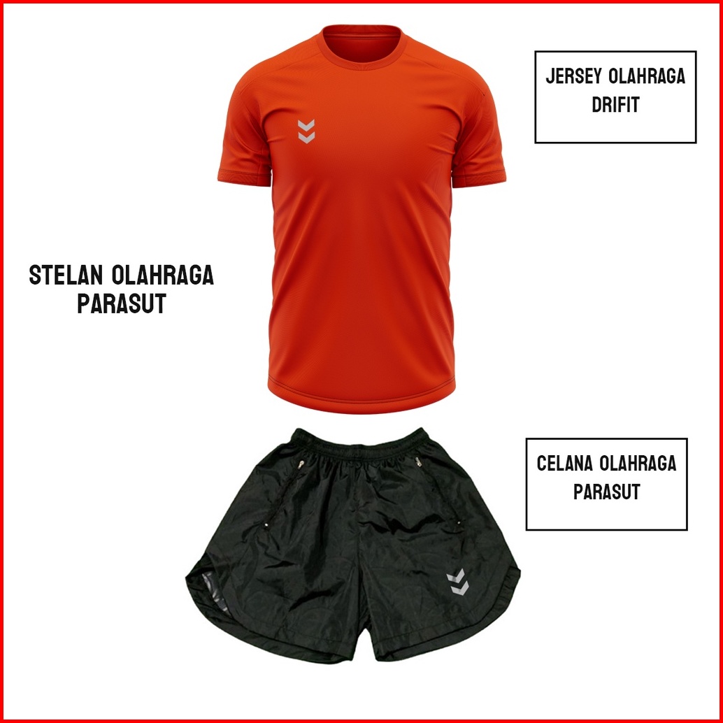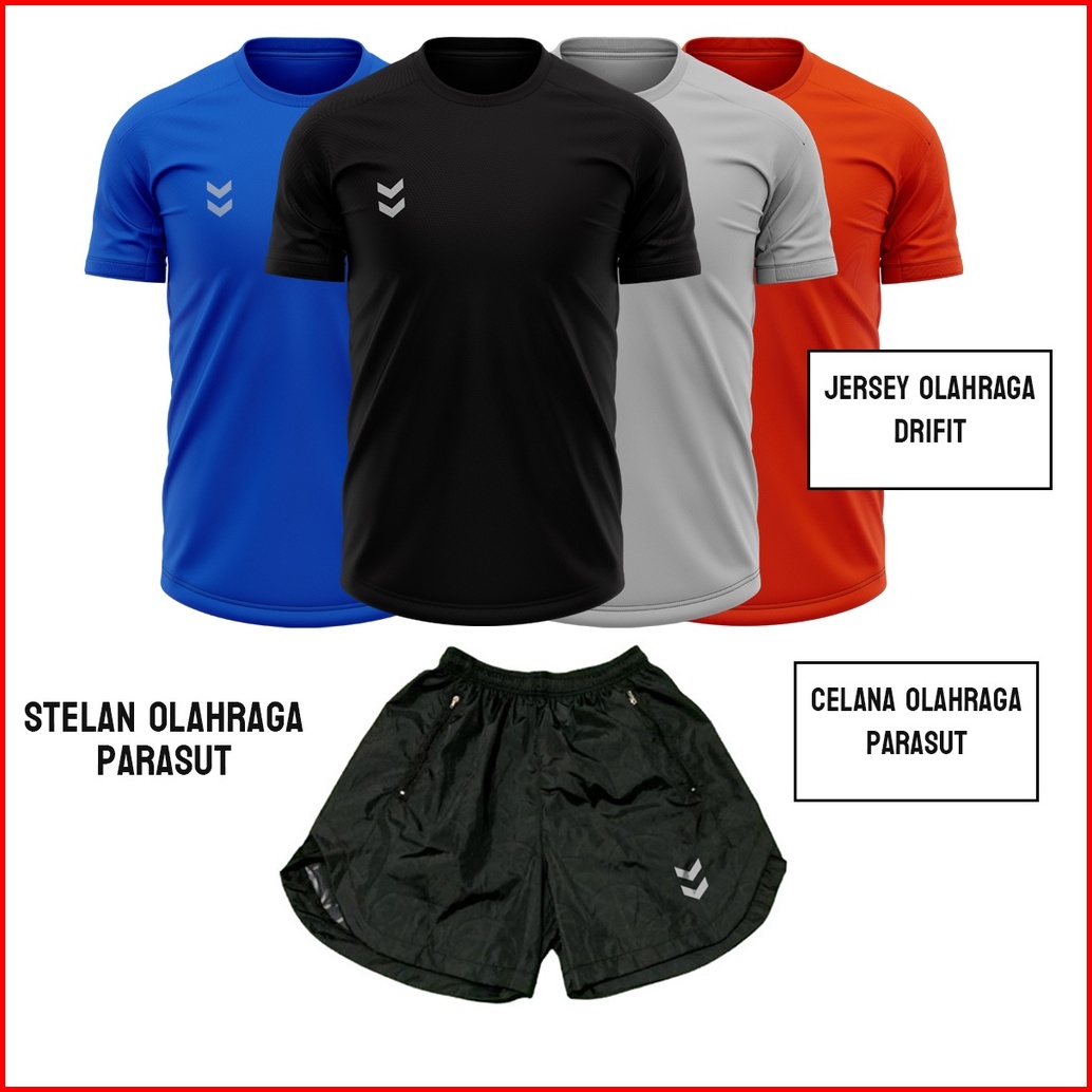 Stelan Jersey Dan Celana Olahraga Lari Running Voli Futsal Gym Bahan Parasut