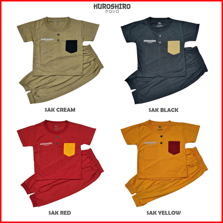 Kuroshiro - Setelan Baju Anak Laki Laki 1-9 Tahun Kancing Saku Joger Kaos Kuroshiro