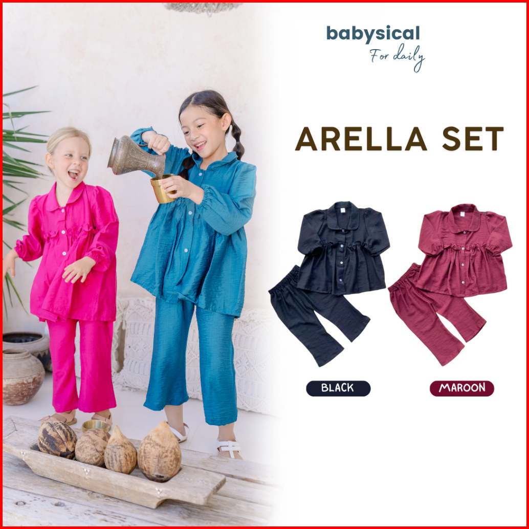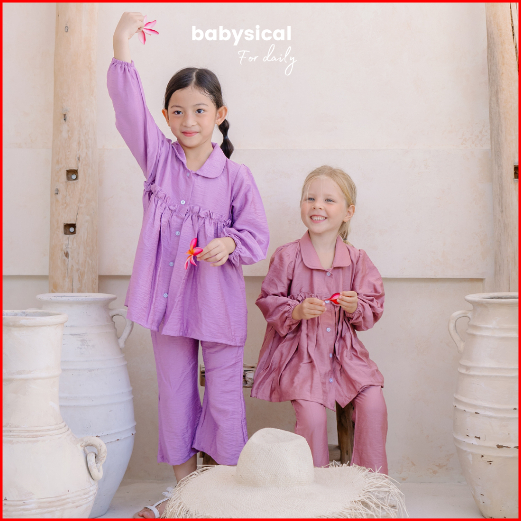 Babysical 1-6 Tahun Arella Setcel Setelan Baju Anak Perempuan Set Celana Blouse Atasan Bawahan Baju Anak Balita Katun Vi