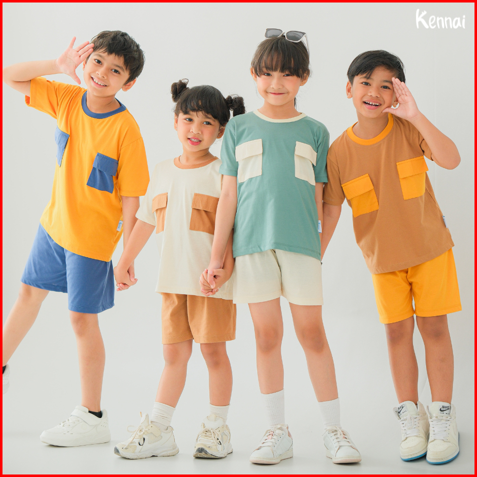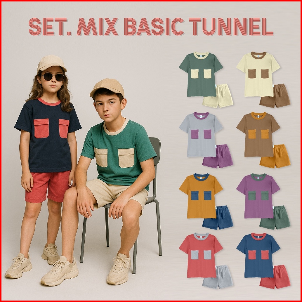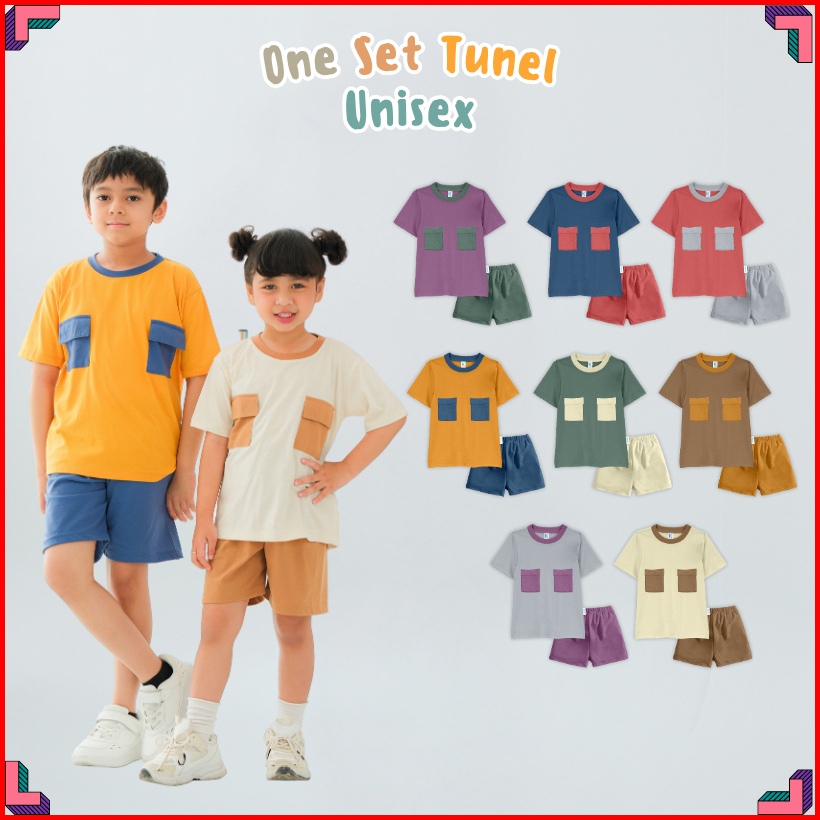 Kennai Setelan Kaos Polos Anak Mix Basic Tunel Usia 1-12 Tahun