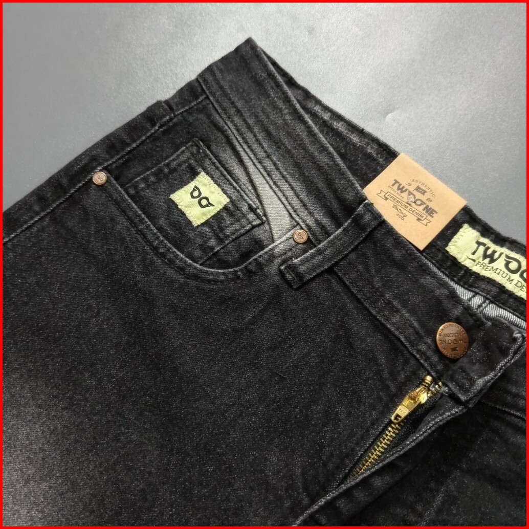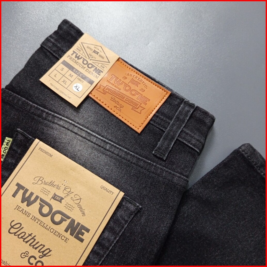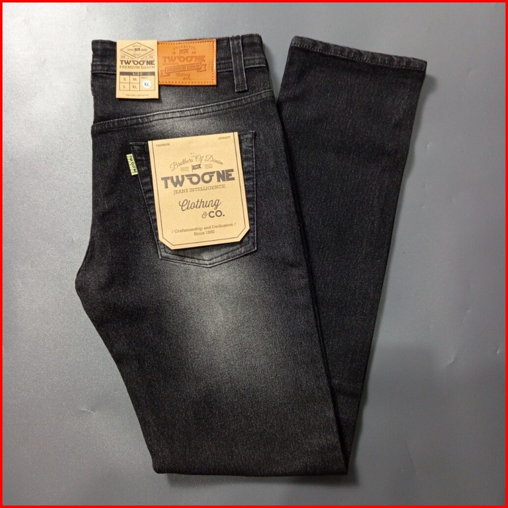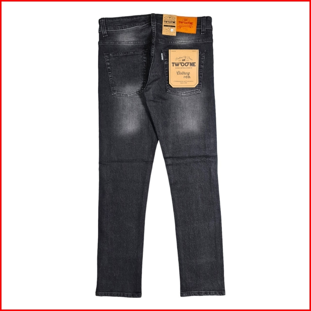 Two One - Celana Jeans Panjang Pria Slim Fit Denim Stretch Black Jaz Scrup