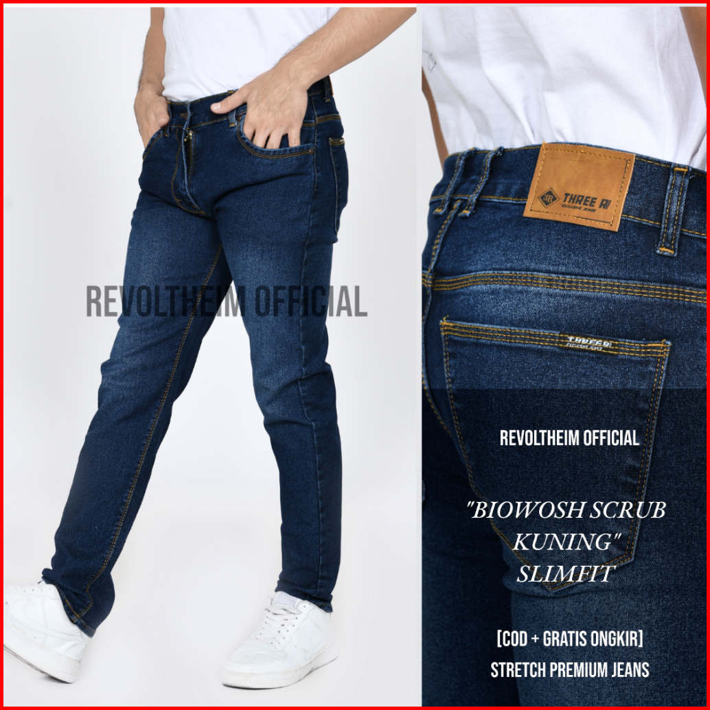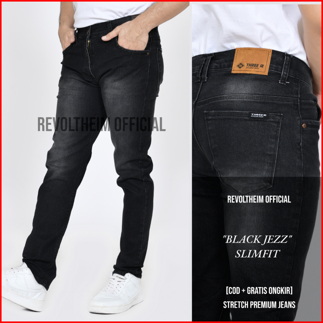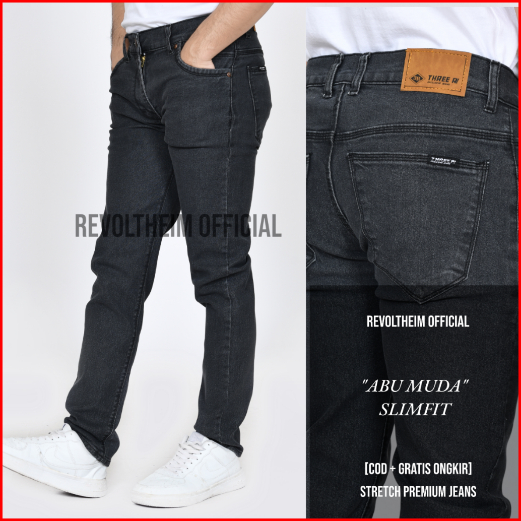 Celana Jeans Pria Slim Fit Panjang Stretch Grey Sandwash Acid Abu Cowok Tebal Denim Melar