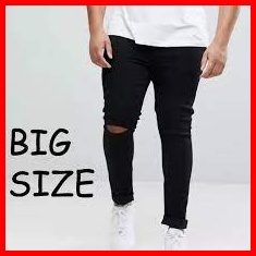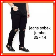 Celana Jeans Jumbo Sobek Cowok - Rip Knee - Sobek Silet Lutut Hitam