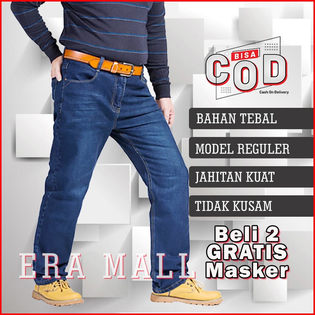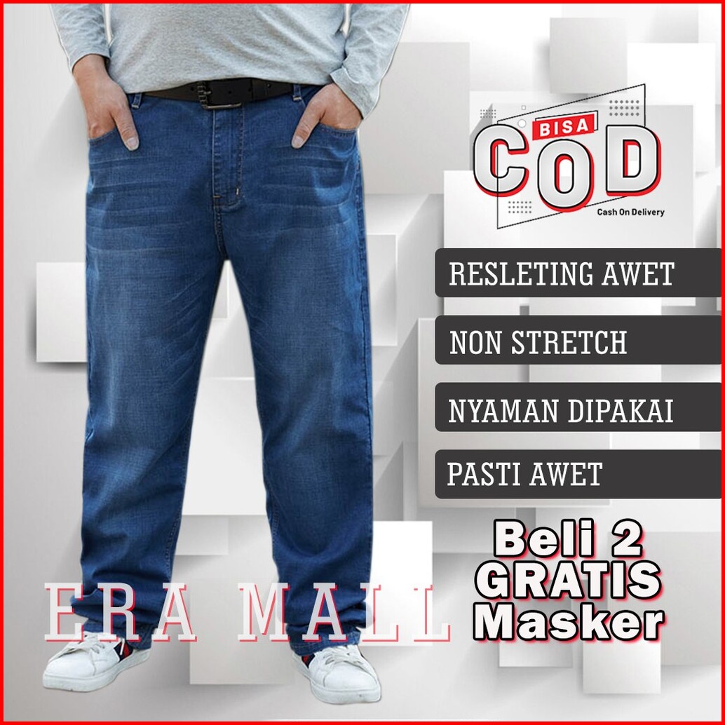Celana Jeans Panjang Pria Reguler Jumbo Big Size Jens Cowok Standar Ukuran Besar
