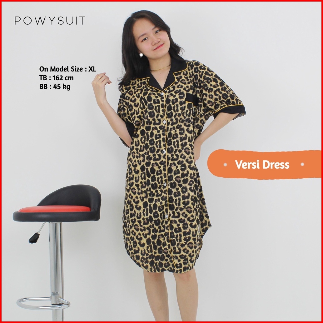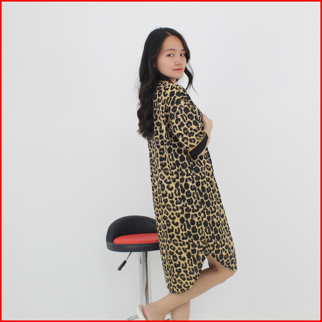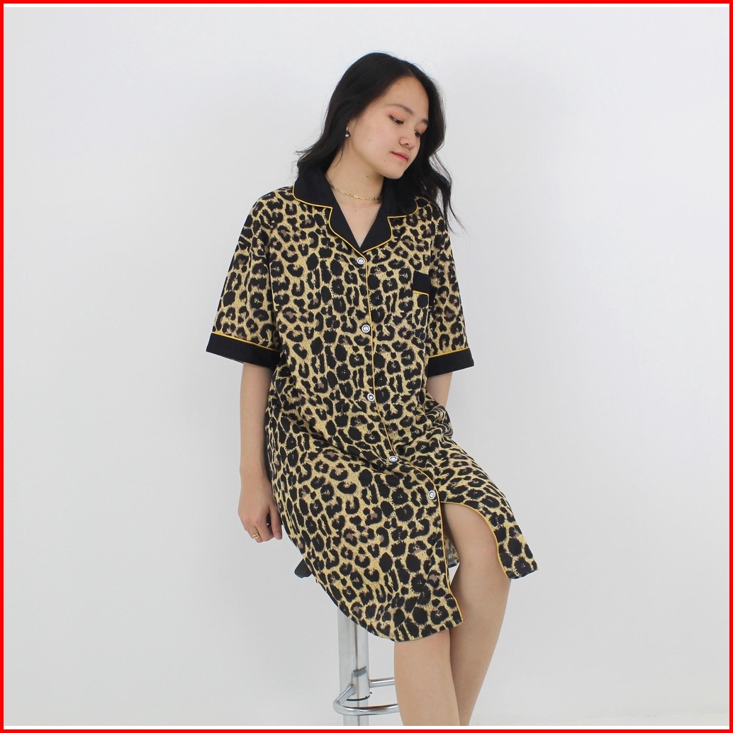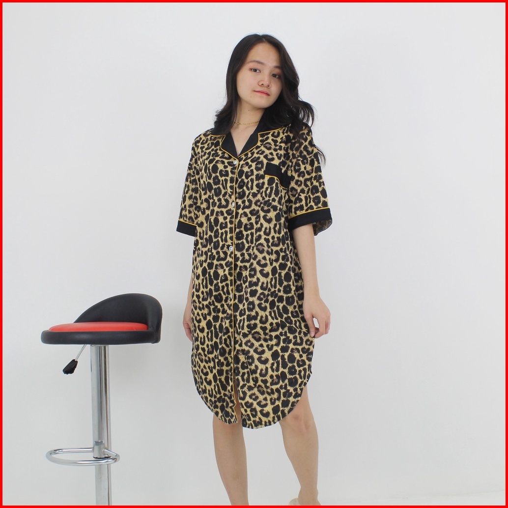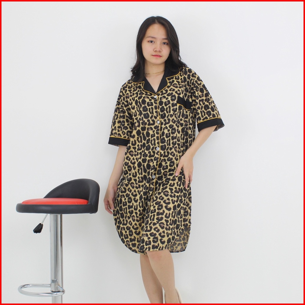 Gn16 Leopard Daster Powysuit Dress Wanita Poliester Dewasa Motif Kancing Baju Tidur Dress Busui